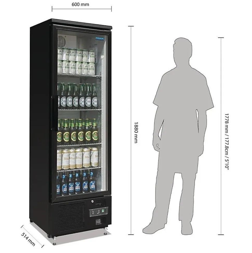 Armoire à Boissons Réfrigérée 307 litres positiveGardez vos boissons fraîches à portée de main à tout moment grâce à cet arrière-bar grande capacité Polar une porte, température de +2°C à +8°C. Il possède une variété de fonctions dont un contrôleur de température intégré, le dégivrage automatique, des pieds réglables et une porte battante.Avec des composants résistants à l’usure et une construction commerciale solide, choisissez ce frigo à boisson si vous prévoyez d’accéder fréquemment à l’unité. Marque: Polar Capacité: 307 L Dimensions: 1872(H) x 600(L) x 514(P) mm Réfrigérant: R600a Plage de Température: 2 °C à 8 °C Alimentation: 230V Poids: 98 kg Prise: oui 4 étagères réglables – Plage de températures ambiantes : 5°C à 32°C Référence soumise à une Eco-participation DEEE de 6,37€ par unité vendue