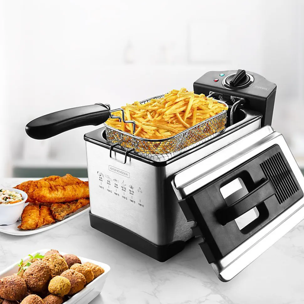 Découvrez la friteuse FRY_PLUS de la marque Kitchencook, un appareil polyvalent conçu pour vous permettre de frire vos plats préférés en toute simplicité. Avec sa capacité de 3 litres et une capacité de cuisson de 600 g, cette friteuse vous offre un grand volume pour préparer de délicieuses fritures pour toute la famille.La FRY_PLUS est équipée d’une puissance de 2000 W, ce qui lui permet de monter rapidement en température, assurant ainsi des temps de cuisson réduits. Grâce à son panneau de commande simple avec un bouton rotatif, vous pouvez régler la température jusqu’à 190°C selon vos besoins de cuisson.Son couvercle est muni d’une fenêtre transparente, vous permettant de contrôler facilement l’avancée de la cuisson sans ouvrir le couvercle. De plus, la friteuse est équipée d’un filtre amovible anti-odeur et anti-émanation de vapeur, assurant une cuisine sans les désagréments des odeurs de friture.La FRY_PLUS est conçue pour faciliter son utilisation et son entretien. Sa poignée sur le panier est démontable, ce qui permet un rangement compact et pratique. De plus, le couvercle, la cuve et le panier sont amovibles, facilitant ainsi le nettoyage après utilisation.La résistance de chauffage est directement placée dans la cuve, ce qui garantit une montée en température rapide et une friture peu odorante. De plus, l’appareil est équipé d’une protection contre la surchauffe, assurant ainsi une utilisation en toute sécurité.La friteuse FRY_PLUS est composée de matériaux de qualité, avec un corps en acier inoxydable, une cuve émaillée antiadhésive, un panier en fer et un couvercle en plastique et inox, lui conférant une durabilité et une résistance accrues. Ses pieds antidérapants assurent une stabilité lors de son utilisation.