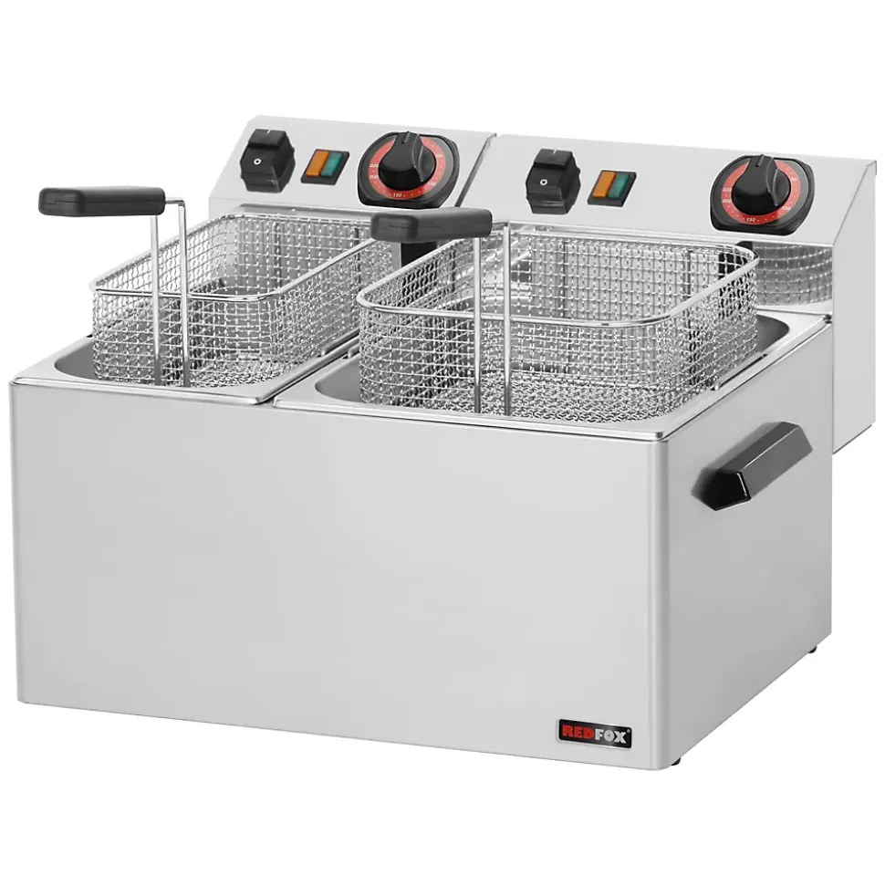 Friteuse électrique 0,42 + 0,38 kW/l, 8 + 5 l TOP 230 V FE 74 Friteuse électrique 0,42 + 0,38 kW/l, 8 + 5 l TOP 230 V | REDFOX – FE 74 est un équipement professionnel conçu pour répondre aux exigences des cuisines professionnelles. Appareil électrique. Équipements à poser. Ce modèle offre une puissance optimale, garantissant une performance efficace pour toutes les utilisations en cuisine. Alimentation : 230 V / 1N – 50 Hz. Allumage : Électrique. Indice de protection d’enveloppe : IPX4. Matériel : Inox. Indicateurs : Voyants de marche et de préchauffement du four. Fabriqué avec des matériaux robustes, il assure une grande durabilité et une résistance optimale aux conditions intensives. Épaisseur de la plaque supérieure [mm] : 0.80. Équipement standard pour l’appareil : couvercles, paniers. Volume de la cuve [L] : 8. Grâce à un contrôle précis de la température, il assure une cuisson homogène et parfaitement maîtrisée. Grâce à un contrôle précis de la température, il assure une cuisson homogène et parfaitement maîtrisée. Thermostat de sécurité jusqu’à X ° C : 235. Pieds réglables : Oui. Matériel de l’élément chauffant : AISI 304. Taille du panier [mm] : 210 x 235 x 100 + 130 x 235 x 100. Fabriqué avec des matériaux robustes, il assure une grande durabilité et une résistance optimale aux conditions intensives. Vidange : Non. Emplacement du chauffage : Intérieur.