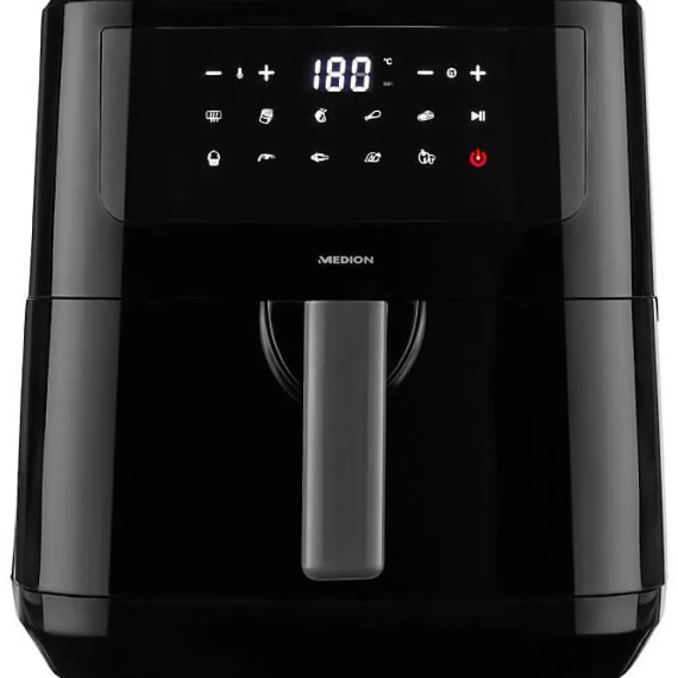Optez pour la friteuse a air chaud MEDION P10 XL pour des repas sains et croustillants. Avec ses 2150 W de puissance et ses 9 programmes, elle s’adapte à toutes vos envies. Son écran tactile intuitif facilite l’utilisation, tandis que les 2 éléments chauffants en inox assurent une cuisson homogène. La capacité de 6,3 L est idéale pour les grandes portions. Le modèle noir, élégant et moderne, s’intègre parfaitement dans votre cuisine.