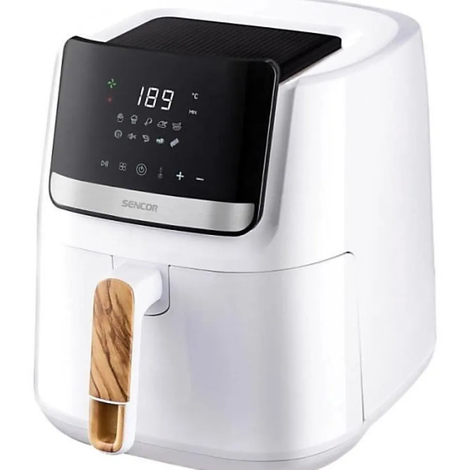 Découvrez la Air Fryer SFR 6551WH de SENCOR, une friteuse à air de 6,5 litres et 1600 W. Elle offre une cuisson saine sans huile grâce à son système de circulation d’air optimisé. Elle dispose d’un écran LED, d’un minuteur digital de 60 minutes avec alarme, et d’un contrôle de température de 80 à 200 °C. Son design blanc avec détails en bois s’intègre élégamment en cuisine. Prête à l’emploi en 3 minutes, elle est facile à nettoyer avec son panier antiadhésif amovible. Cette friteuse est idéale pour rôtir, griller ou réchauffer rapidement tout en réduisant les matières grasses jusqu’à 80%.