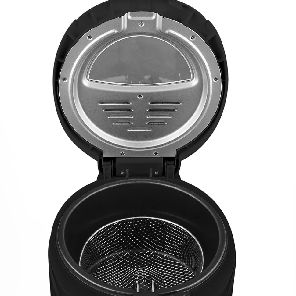 Friteuse Electrique Triomph ETF2158 :- Parois froides- Capacité : 2,5 L soit 600g- Température réglable par bouton de contrôle- Revêtement antiadhésif pour un nettoyage facile- Témoin lumineux de fonctionnement- 2 filtres pour réduire les odeurs durant la cuisson- Poignée multifonction avec système de levage- Couvercle et panier amovible pour un nettoyage facile (cuve non amovible)- Grande fenêtre d’observation- Verrouillage de sécurité- Pieds antidérapantsCaractéristiques techniques :- Tension 220-240V- Puissance Electrique 1500 -1800W- Fréquence 50/60Hz- Matière Corps Plastique – Capacité 2,5L- Protection anti surchauffe OUI- Pieds anti-dérapants OUI- Dim. Produit 308 x 157 x 312 mm- Poids : 2,1 kg…