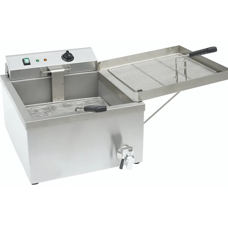 Friteuse Professionnelle électrique – Beckers Friteuse électrique pour la pâtisserie de la marque Beckers, fabriqué en matière de haute qualité.Puissance: 3000 W / 220∾240V / 50/60 HzCapacité d’huile: 11 Lt.Poids: 17 kgRobinet pour le drainage de l’huileIndicateurs de puissance et de chauffageTempérature: + 30 ° C ~ + 200 ° CThermostat de sécurité: + 230 ° CCadre en acier inoxydable et réservoir et panierLivré avec couvercleDimensions: 545x460x355 mmTaille du panier: 379×355 mmTaille de bain: 400x400x160 mmDimensions de l’emballage: 740x620x550 mmOrigine: Asie