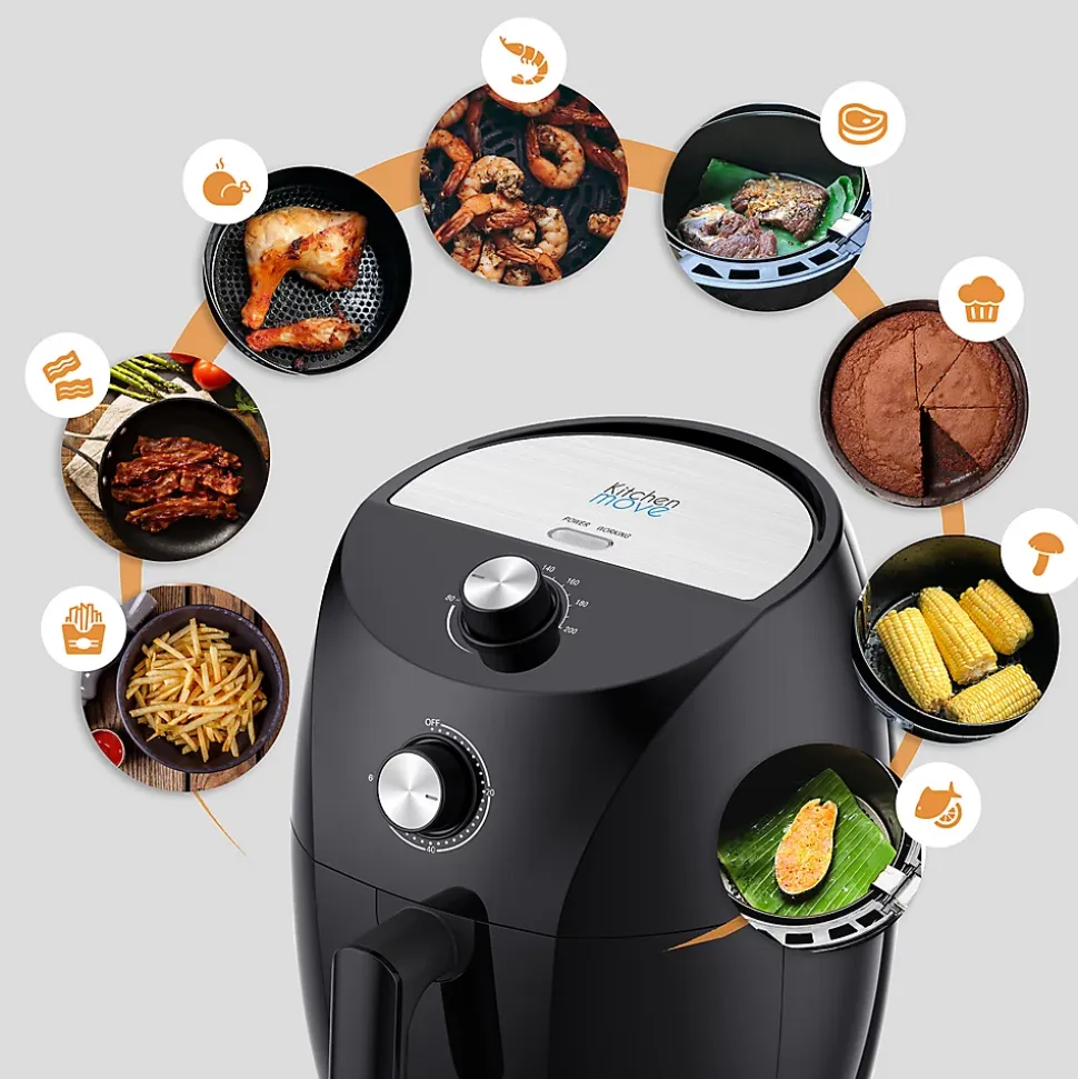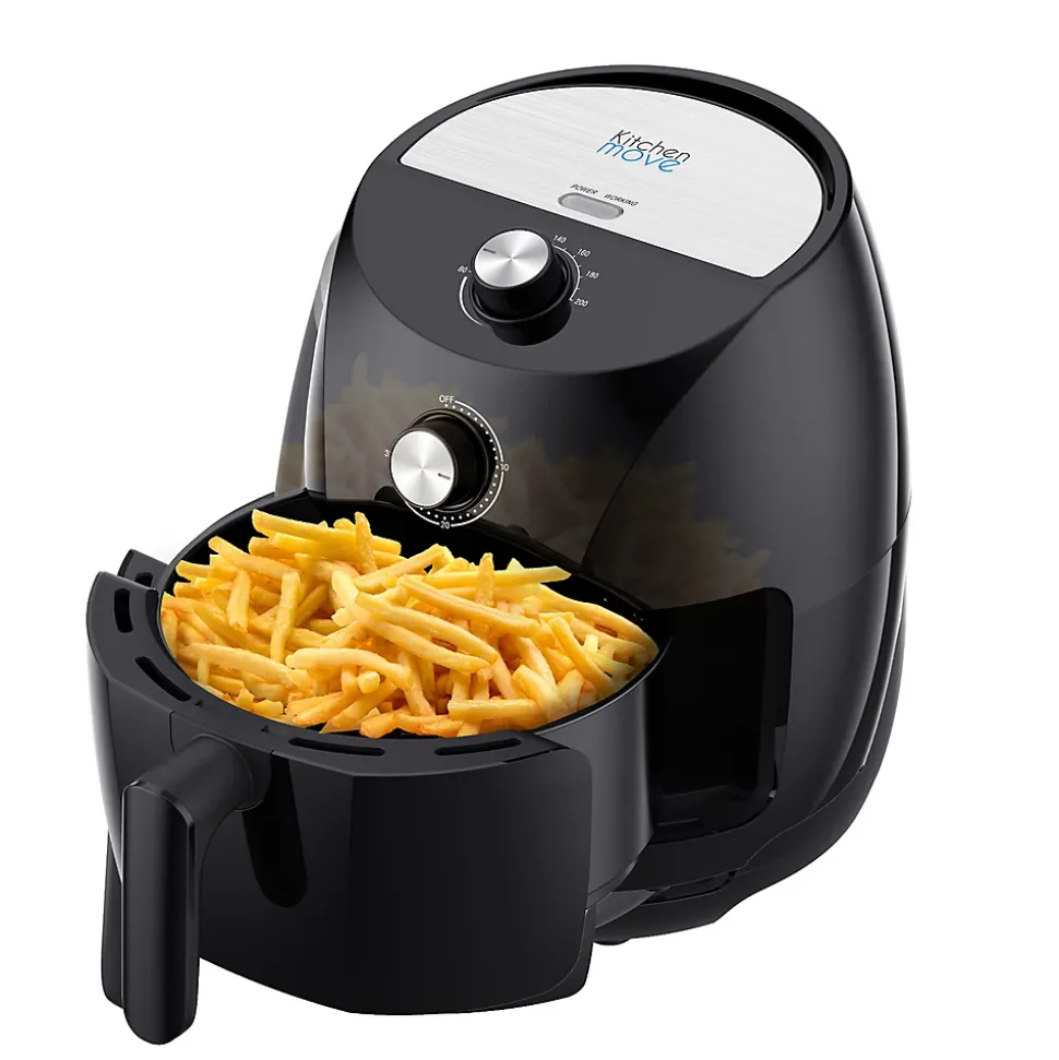 Friteuse sans huile 3.5l 1400w Kitchen Move – Le principe de fonctionnement de la friteuse à air chaud est simple : les aliments sont cuits à 360 ° grâce à la technologie de circulation de l’air chaud.Cet appareil peut cuire, frire, griller rôtir, sécher, réchauffer… sans utiliser d’huile.Cette cuisson préserve le goût, la fraîcheur et les valeurs nutritionnelles des aliments.Un bouton de séparation permet de sortir le panier facilement.Le bac et le panier sont tous les 2 antiadhésifs , ce qui rend le nettoyage plus pratique et aussi lavable au lave-vaisselle.La friteuse à air chaud de grande taille offre plus d’espace que d’autres sur le marché et convient à plus d?aliments.La capacité de 3.5 L répond également aux besoins d’une famille de 3 personnes.Avec une puissance extrêmement puissante de 1400 W, l’Airfryer peut chauffer rapidement, ce qui réduit le temps de cuisson et économise de l’énergie.Arrêt automatique et fonction de mémoire après la cuisson de la friteuse à air chaud, le programme est automatiquement fermé pour économiser de l’énergie.Vous pouvez tirer le panier pour secouer des aliments ou ajouter des épices et du sel sans interrompre la durée ou la température préréglée.Lorsque vous remettez le panier, la friteuse à air chaud est à nouveau en fonction.De plus, une protection contre la surchauffe et un arrêt automatique garantissent un fonctionnement en toute sécurité.L’air est chauffé à la température idéale et circule à grande vitesse dans la chambre de cuisson afin que les aliments soient cuits uniformément, en les laissant croustillants et secs à l’extérieur mais doux et tendre à l’intérieur.Sa grande puissance permet de le chauffer instantanément et rapidement, (1,5 fois plus rapide qu’un four) .Pas de préchauffage nécessaire. Savourez d’excellentes fritures croustillantes, avec une quantité minime de matières grasses. – Friteuse sans huilePuissance : 1400