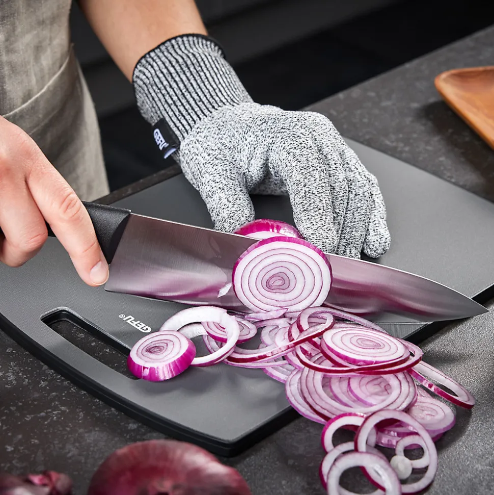 Le gant de protection anti-coupure est un accessoire indispensable pour tous les cuisiniers et les chefs professionnels. Ce gant est conçu pour offrir une protection supérieure contre les coupures et les blessures liées à la manipulation d’outils de coupe tranchants tels que les couteaux, les mandolines et les râpes.Collection : CUISSON ACC Matière : Tissu Couleur : Gris Longueur : 29.00 cm Largeur : 16.50 cm Hauteur : 1.00 cm