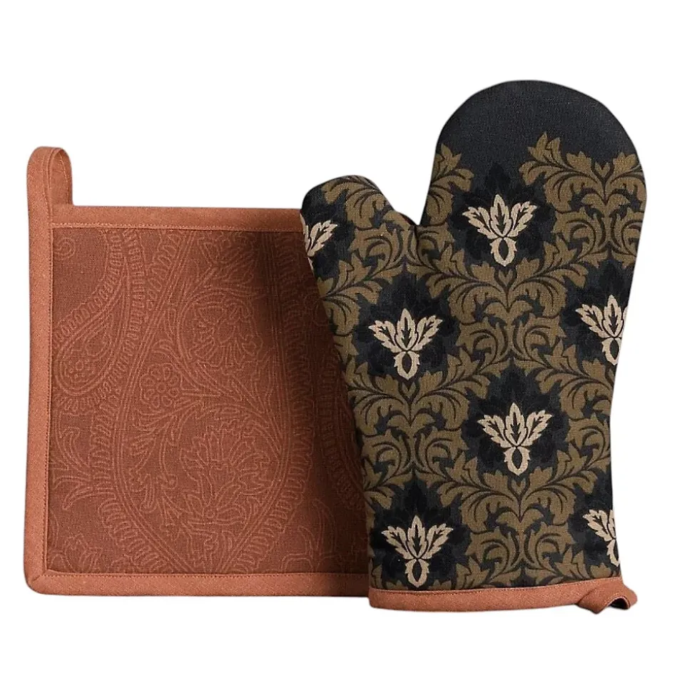La protection rencontre l’élégance ! Découvrez notre lot gant + manique Marie-Antoinette, parfait pour cuisiner en toute sécurité tout en apportant une touche raffinée à votre cuisine. Avec leur enveloppe 100 % coton certifié Oeko-Tex et leur garnissage en bourre coton, ces accessoires sont à la fois confortables, respirants et résistants à la chaleur. Idéal pour retirer vos plats du four sans risque de brûlure. ✅ Caractéristiques : Design élégant inspiré de l’univers Marie-Antoinette Dimensions : gant 20 x 20 cm et manique 18 x 18 cm Enveloppe 100 % coton &ndash Garnissage bourre coton isolant Certifié Oeko-Tex (sans s) Lavage en machine à 40 °C Séchage machine autorisé &ndash Repassage moyen (150 °C) &ndash Pressing possible Durable, pratique et idéal pour un usage quotidien Ajoutez une note chic et intemporelle à votre cuisine avec ce set de protection. Parfait pour les amateurs de gastronomie et les cadeaux maison !