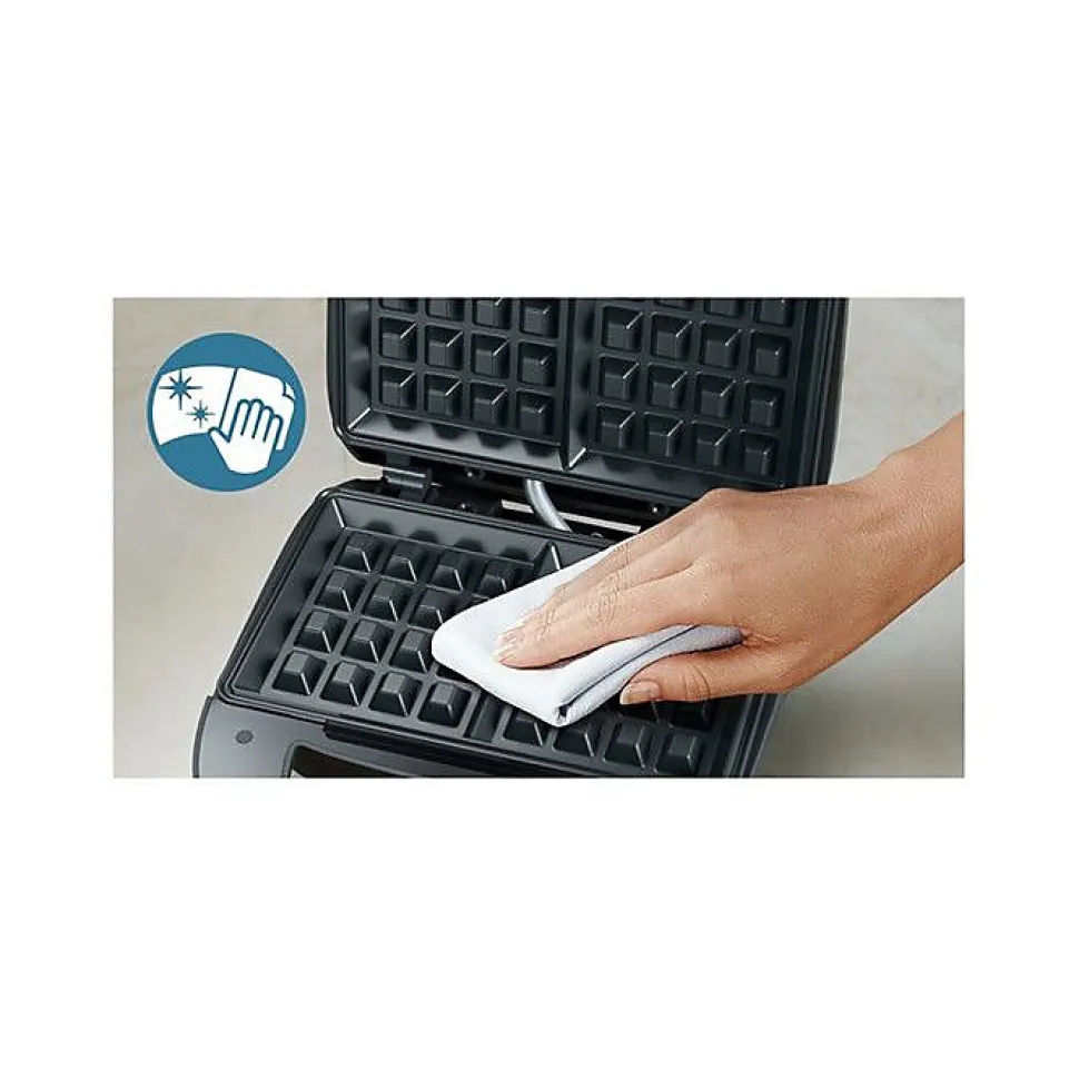 Le gaufrier Philips HD2332/90 de 750 W vous permet de préparer des gaufres dorées à la perfection. Grâce à ses plaques antiadhésives, le démoulage est facile et le nettoyage rapide. Il dispose d’un bouton marche/arrêt pratique et d’un système Easy Lock pour une cuisson homogène. Son design compact avec rangement vertical optimise l’espace dans votre cuisine.