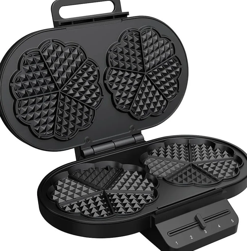 Préparez de délicieuses gaufres en forme de cœur avec ce gaufrier moderne de 1200 W. Son thermostat réglable jusqu’à 220 °C vous permet d’obtenir des gaufres légères ou dorées selon vos préférences. Les plaques antiadhésives facilitent le démoulage et le nettoyage, tandis que les poignées froides et les pieds antidérapants assurent une utilisation sûre pour toute la famille. Avec sa capacité de 10 gaufres simultanées, il est parfait pour les petits-déjeuners ou goûters en famille. Son design compact et le rangement intégré du cordon optimisent l’espace, et le boîtier en bakélite mat garantit durabilité et élégance.