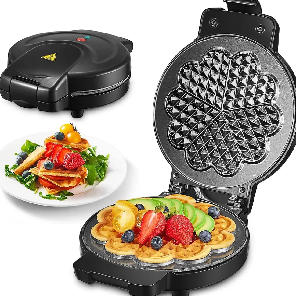 Savourez des gaufres fines en forme de cœur de 16,3 centimètres dans le confort de votre maison ! Grâce à un système de chauffage puissant de 900 watts, ce gaufrier peut préparer 5 gaufres en forme de cœur ou une grande gaufre en 5 minutes (attendre 30 secondes après l’extinction du voyant vert avant d’ouvrir le couvercle pour obtenir une gaufre plus brune).Les voyants sont très clairs, avec une lumière rouge qui indique que l’appareil est allumé et une lumière verte qui indique quand la pâte est prête et la cuisson terminée, pas besoin de minuterie.L’appareil mesure 19 x 24,5 x 7,5 centimètres. Il est possible de ranger le gaufrier à la verticale, ce qui permet de gagner de la place dans un placard, même dans les petits foyers.Grâce au revêtement antiadhésif sans PFOA, les gaufres peuvent être cuites avec très peu de matière grasse et nécessitent moins de nettoyage après la cuisson. La charnière flexible permet à la pâte de bien lever et les gaufres sont légères et moelleuses.Pendant la cuisson, laissez la fermeture ouverte et fixez-la à 60°, elle peut servir de poignée Cool-Touch. Après utilisation, fermez la fermeture pour ranger la machine à la verticale.