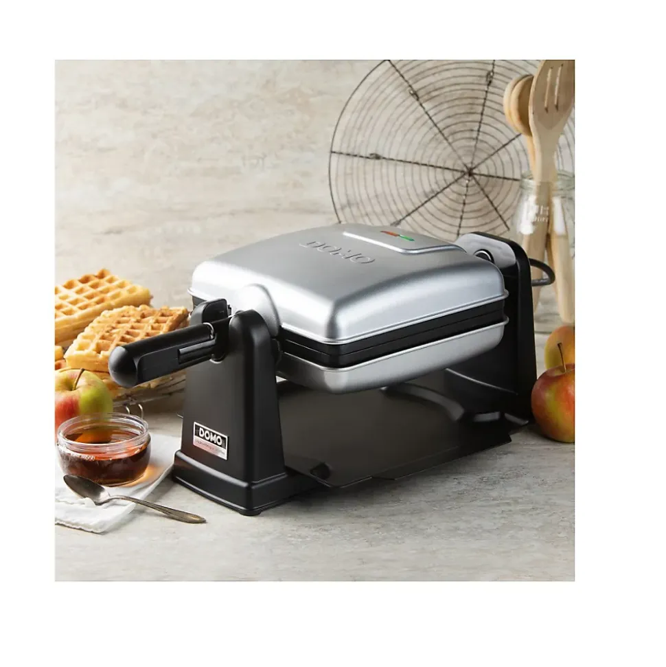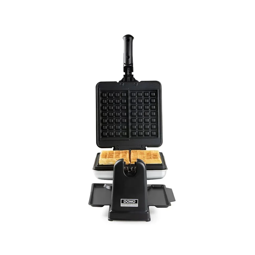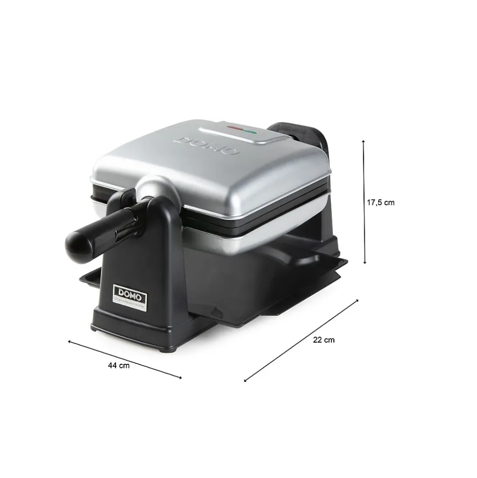 Gaufrier rotatif 1400w inox/noir Domo – Gaufrier rotatif DO9272W de Domo.Utilisez le gaufrier rotatif DOMO DO9272W pour des gaufres belges parfaitement cuites à la maison ! Grâce à sa rotation à 180°, la pâte est répartie uniformément et vous pourrez déguster des gaufres parfaitement dorées, croustillantes à l’extérieur et moelleuses à l’intérieur. Le bac collecteur pratique permet de recueillir l’excédent de pâte et de garder votre plan de travail propre. Le revêtement antiadhésif de haute qualité garantit un démoulage sans effort et un nettoyage facile, tandis que le boîtier et la poignée cool-touch assurent la sécurité pendant l’utilisation. Les témoins lumineux indiquent quand l’appareil est allumé ou éteint, mais aussi quand l’appareil est à la bonne température, pour une cuisson simple et efficace. Cuisez simultanément deux grandes gaufres belges authentiques, au format rectangulaire 4×7. Ce gaufrier compact et facile à ranger s’intègrera parfaitement dans chaque cuisine ! – Type de produit : Gaufrier.Puissance (W) : 1400.Quantité de cuisson : 2.Double Couvercle Pivotant : Oui.Revêtement anti-adhésif : Oui.Ecran : Non.Voyant pilote : Oui.Plaques de cuisson amovibles : Non.Divers : Rotatif à 180°.Autre(s) : Témoin lumineux ‘marche/arrêt’ et ‘prêt à l’emploi’, Poignée cool touch, Plateau ramasse-miettes.Longueur du cordon d’alimentation (cm) : 75.Couleur : Noir.Couleur(s) secondaire(s) : Inox.Dimensions (cm) : 42.4 x 14.6 x 27.5.Dimensions plaques (cm) : 17.4 x x 14.5.Poids (kg) : 3.11.