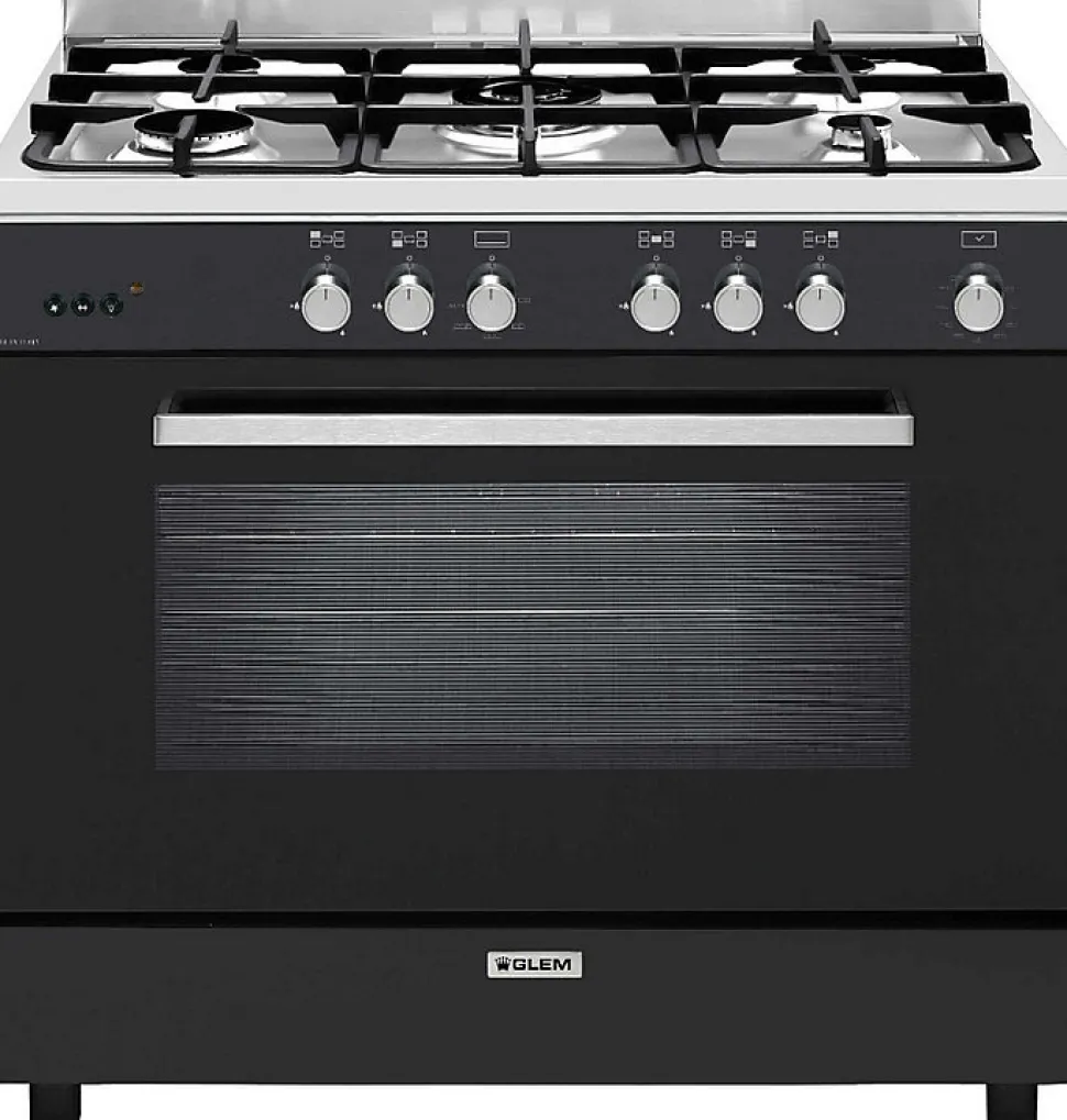 Description piano de cuisson gaz GLEM GE960CMBK2 :Piano de cuisson – Four gaz – 3 modes de cuisson dont Gril + tournebroche – Gril électrique 2 kW – Minuteur sonore 60 minutes – Allumage électronique »bouton » – Eclairage – Panneaux catalytiques autonettoyants – Gradins fils – Contre-porte plein verre avec verre démontable – Porte 2 vitres – Tournebroche – Plan de cuisson inox – Allumage de la table électronique »bouton » – 5 brûleurs dont 1 triple couronne 3,8 kW – Sécurité gaz par thermocouple – Grilles fonte – Départ de crédence – Coffre de rangement chauffe-plat – Plinthes cache-pieds noires de série – Ventilateur tangentiel aspiré : l’air chaud du four est rejeté sur l’arrière, pas de souffle d’air en façade – Homologué pour être encastré entre deux meubles de cuisine, selon la norme UNI EN 30-1-1 classe 2 – Finition noir brillant.Code EAN : 8054383965045Caractéristiques piano de cuisson 90 cm gaz GLEM GE960CMBK2 :Volume du four : 109 LEnergie four : gazType de cuisson : Convection naturelleChaleur tournante : nonNettoyage four : CatalyseProgrammateur : sans (Minuterie simple)Préconisation température : nonPuissance gril : 2000 WattsOuverture porte : abattantePorte froide : nonEclairage intérieur : ouiTournebroche : ouiEquipement : 1 grille + 1 lèchefriteTable de cuisson : 5 feux gazFoyer(s) gauche : AV -/3 _ AR -/1,75 cm/kWFoyer(s) droit : AV -/1 _ AR -/1,75 cm/kWFoyer(s) central : triple couronne 3,8 kW cm/kWAllumage table : électroniqueSécurité gaz : par thermocoupleInjecteurs : Equipé pour le gaz naturel – Livrée avec injecteurs butane/propaneGrilles : fonteLabels piano de cuisson gaz GLEM noir GE960CMBK2 :Label énergie. : ALe + produit : Plan de cuisson inoxCordon électrique : fourni (120 cm) sans priseColoris : noirDimensions (LxHxP) : 90 x 91/96 x 60 cmPoids net : 67 KgLieu de fabrication : Italie