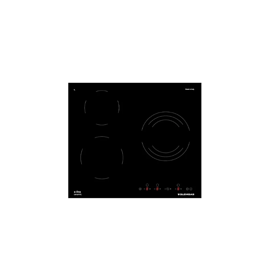 Table vitrocéramique – Cette table vitrocéramique de 60 cm allie performance et flexibilité avec ses 3 foyers Hi-Light, dont une zone extensible triple (15/23/30 cm, 1050W à 2700W) pour s’adapter à différentes tailles de récipients. Avec 9 niveaux de puissance par foyer, elle permet un contrôle précis de la cuisson, et chaque foyer dispose d’un minuteur programmable de 1 à 99 minutes, assurant une maîtrise parfaite des temps de cuisson. Le design élégant en verre noir avec marquage blanc s’intègre harmonieusement dans toutes les cuisines. La sécurité enfant verrouille les commandes sensitives pour éviter toute manipulation accidentelle, et les témoins de chaleur résiduelle garantissent une utilisation en toute sécurité. Compatible avec une installation standard (dimensions d’encastrement 560 x 484 x 47/67 mm), cette table est équipée d’un cordon d’alimentation de 115 cm.