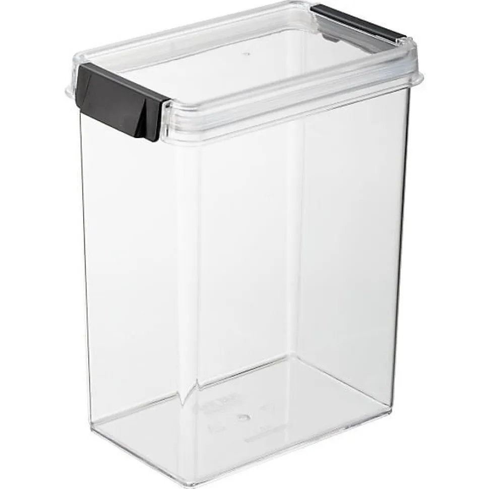 Boîte de rangement cuisine empilable 2,6 litres , avec couvercle hermétique à clips.Dimensions: (L)168 x (P)109 x (H)215 mm Cette boite de conservation convient pour tous les types d’aliments secs comme la farine, le maïs, le riz, les lentilles, les céréales, les pâtes mais également pour la conservation de chips, biscuits et autres snacks apéritifs.Pour une cuisine propre et rangée, c’est la solution idéale pour le rangement dans une armoire ou un tiroir.