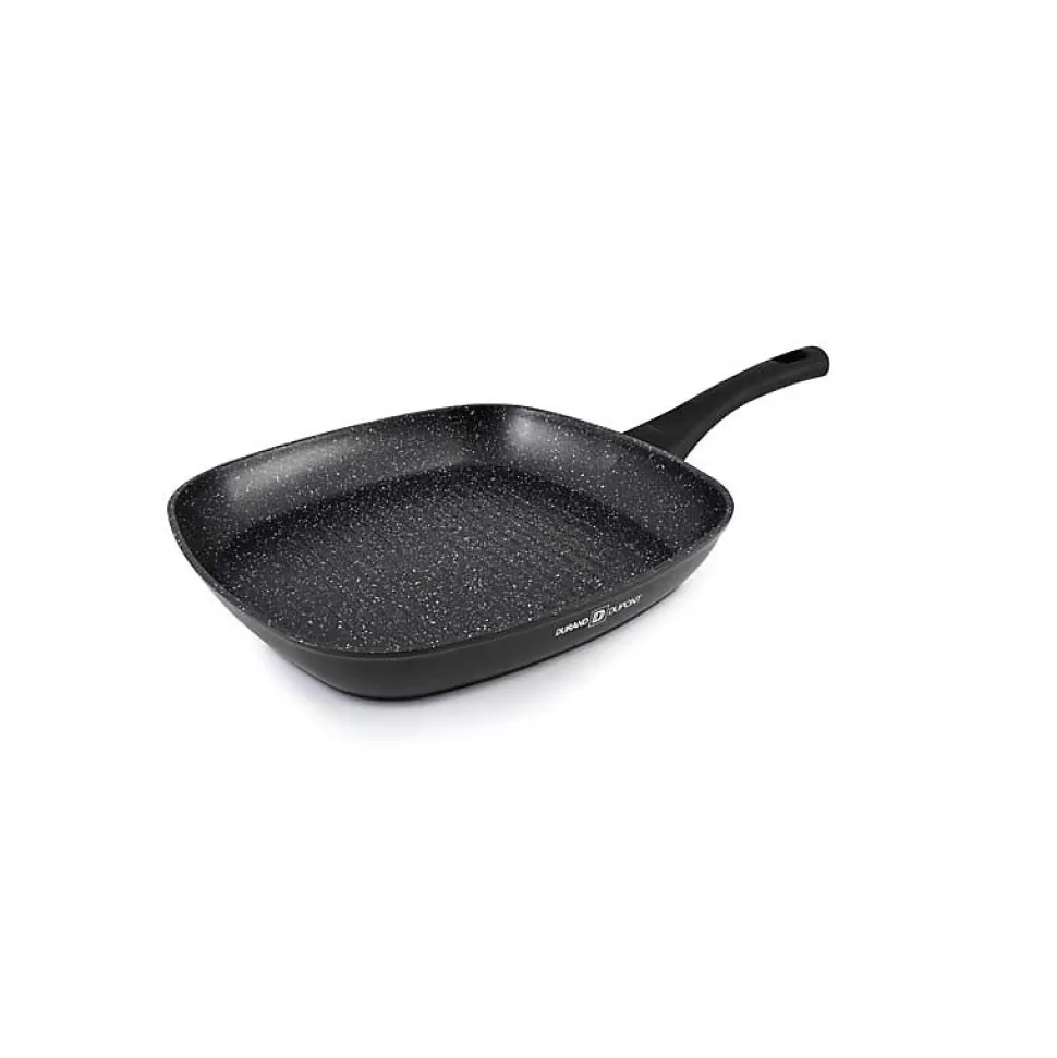 Plongez dans l’art de la grillade avec le grill DORIS_GRILL28TFI de Durand Dupont, une fusion parfaite de performance et de praticité. Construit en aluminium robuste, ce grill de 28*28 cm offre un revêtement anti-adhésif intérieur, facilitant non seulement la cuisson de vos plats préférés, mais aussi le nettoyage.Avec un revêtement extérieur résistant et une épaisseur de 3 mm, il assure une diffusion optimale de la chaleur pour des grillades homogènes.Polyvalent, ce grill s’adapte à tous les feux, y compris l’induction, tout en optimisant l’espace dans votre cuisine.La fabrication conforme aux normes d’hygiène et de sécurité garantit une utilisation fiable et sécurisée au quotidien.Les caractéristiques techniques du DORIS_GRILL28TFI de la marque Durand Dupont : Matériau : aluminium – solide, longue duréeRevêtement intérieur : anti-adhésifRevêtement extérieur : très résistantCompatibilité : tous feux dont inductionDiffusion optimale de la chaleurOptimise l’espaceFabrication conforme aux normes en matière d’hygiène et de sécuritéÉpaisseur : 3 mmDimension : 28*28 cmHauteur : 4 cmContenance : 2,1 LConseils d’utilisation : Ne pas utiliser à plus de 200°C / Ne pas utiliser d’éponge abrasive / Ne pas utiliser avec des ustensiles de cuisine pointus, aiguisés ou contondants,