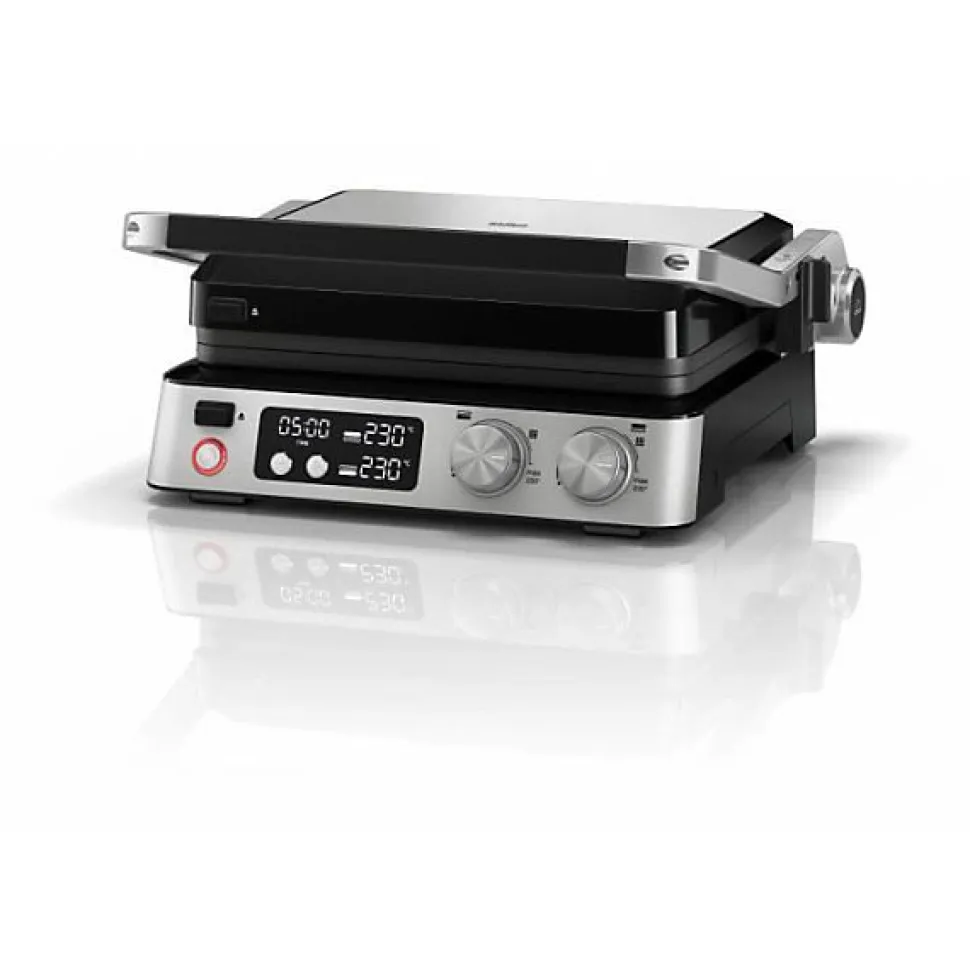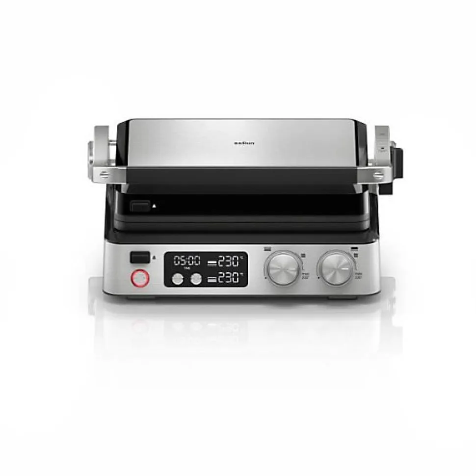 Le grill multifonctions BRAUN Multi Grill 7 allie simplicité et efficacité. Avec 2000 W de puissance et 3 positions de chauffe, il permet de cuisiner pour 6 personnes. Son bac a jus intégré et ses thermostats électroniques garantissent une cuisson parfaite. Idéal pour des repas savoureux, il s’integre parfaitement dans toutes les cuisines grâce a son design noir et acier.