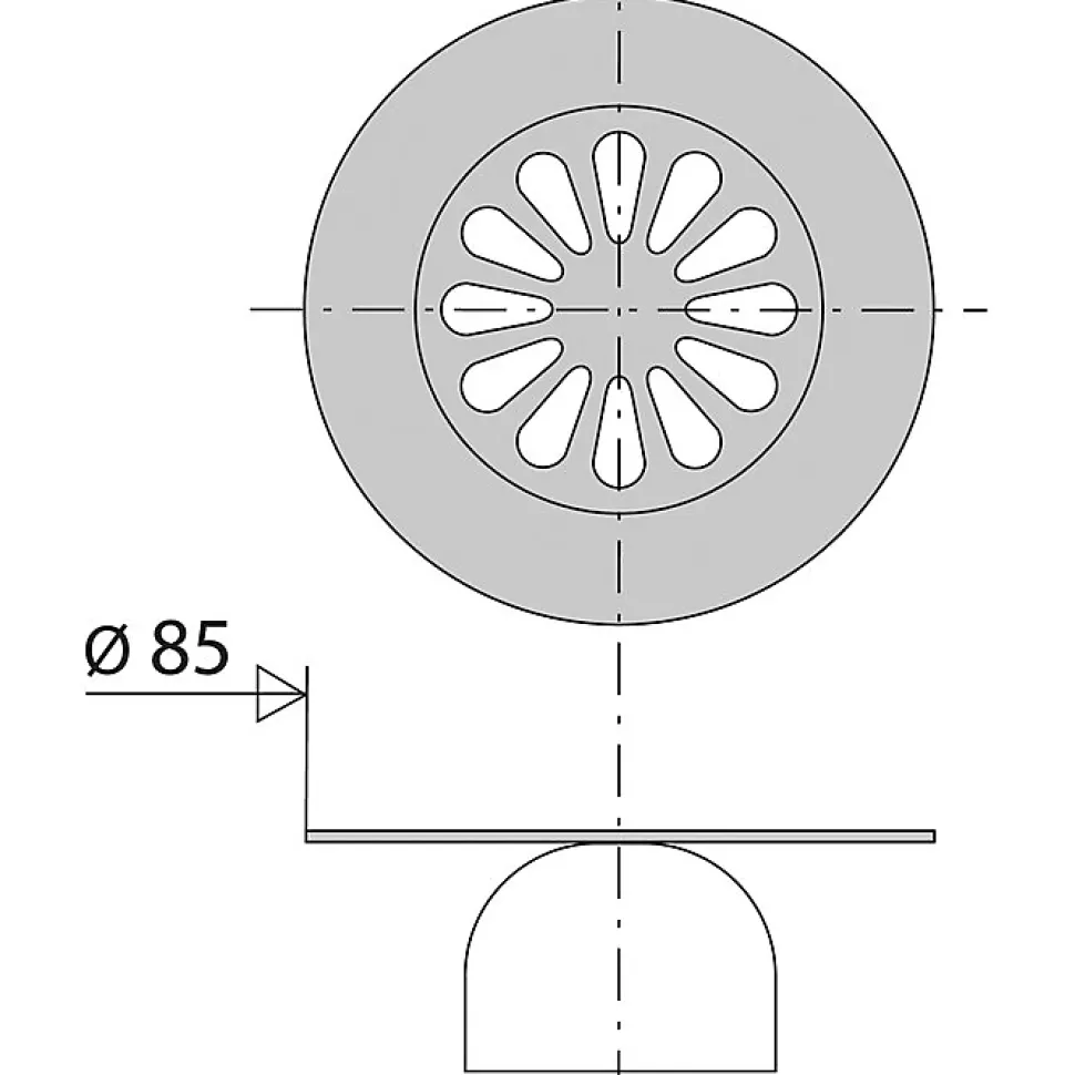 Hauteur (mm) 35Diamètre grille (mm) 85Diamètre cloche (mm) 40Vendu par 1