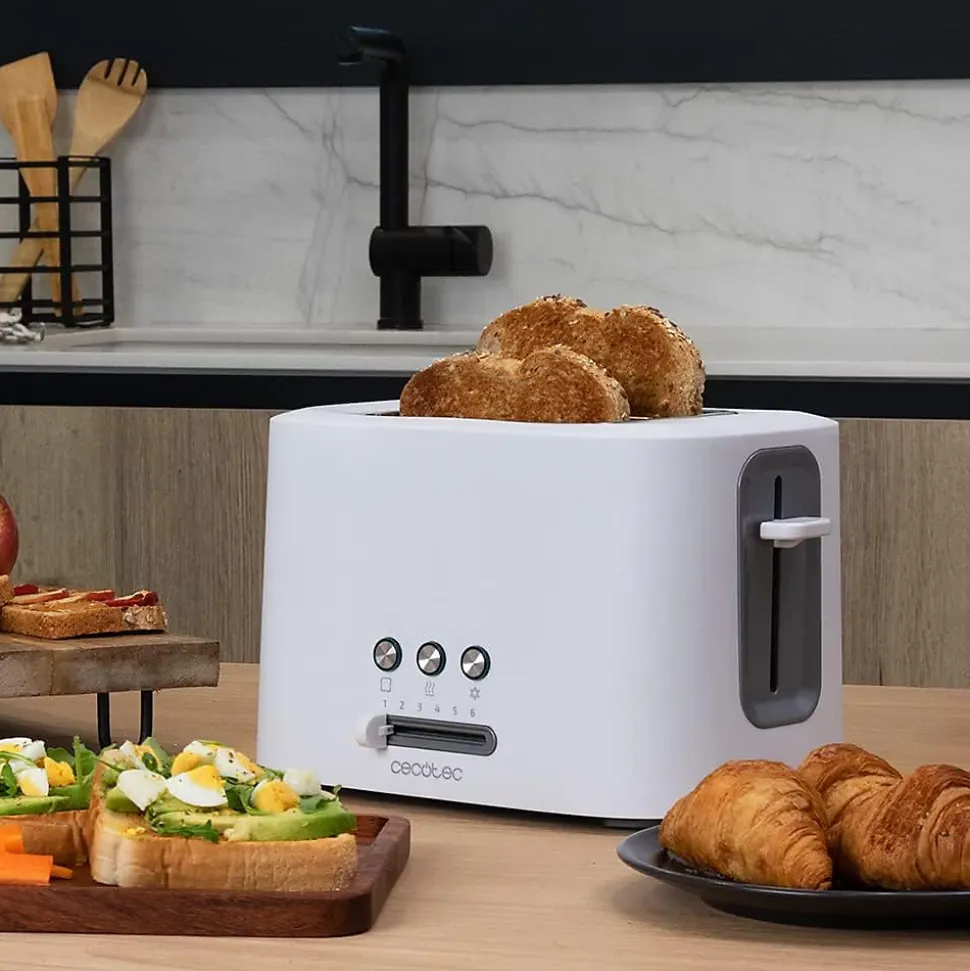 Ce grille-pain double fente de 980 W est idéal pour préparer rapidement deux tranches de pain parfaitement dorées. Ses fentes extra-larges accueillent aussi bien du pain classique que des tranches épaisses, du pain artisanal ou de grandes tranches. Grâce à ses 6 niveaux de brunissage, vous ajustez précisément le dorage selon vos préférences. Il intègre trois fonctions pratiques : Réchauffer pour redonner du croustillant, Décongeler pour griller directement le pain surgelé et Annuler pour interrompre le cycle à tout moment. Son système d’auto-centrage assure un grillage homogène sur les deux faces, tandis que la fonction extra-élévation facilite le retrait des petites tranches en toute sécurité. Les baguettes supérieures permettent également de réchauffer viennoiseries et croissants. Doté d’un plateau ramasse-miettes amovible, d’une base antidérapante et d’un range-câble intégré, il combine praticité, sécurité et design élégant avec finitions inox pour s’intégrer parfaitement dans votre cuisine.