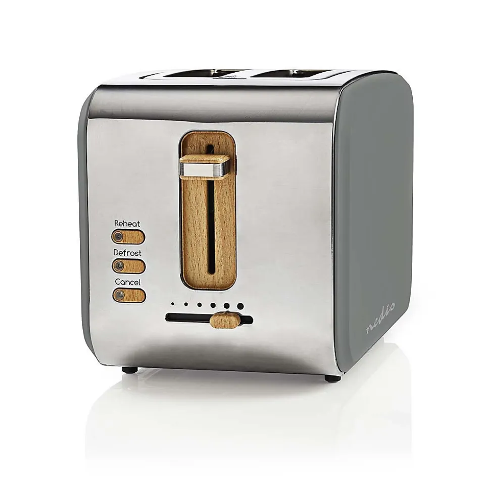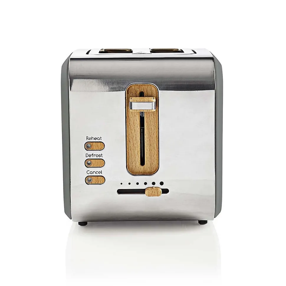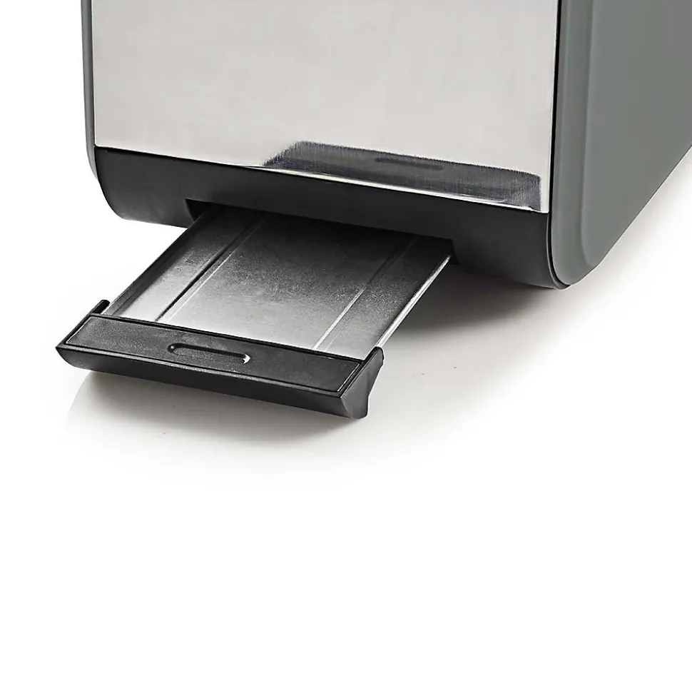 Description du produitGrâce à ses fentes extra-larges, ce grille-pain grille parfaitement le pain prétranché, le pain coupé à la main, les bagels ou les muffins.Les six modes différents et les boutons d’annulation, de réchauffage et de décongélation vous permettent d’avoir un contrôle parfait.Avec son tiroir à miettes amovible, cet élégant grille-pain est simple à entretenir et toujours impeccable.Combinant l’acier inoxydable avec la finition du bois et du caoutchouc, cet appareil électroménager est aussi beau que fonctionnel.CaractéristiquesDeux fentes extra-larges pour griller toutes sortes de painsSix modes différents pour préparer vos toasts exactement comme vous le souhaitezFonctions réchauffage, dégivrage et annulationTiroir ramasse-miettes coulissant pour faciliter le nettoyageContenu de l’emballageGrille-painManuelSpécificationsBouton d’éjection: OuiConsommation électrique maximale: 900 WCouleur: GrisEspace de rangement du cordon: OuiFiche d’alimentation: Type F (CEE 7/7)Fonction de dégivrage: OuiLargeur: 290 mmLongueur: 180 mmLongueur du câble d’alimentation: 0.80 mMatériau: AcierNombre de slots: 2 EmplacementsPieds antidérapants: OuiPince à pain: NonPlateau ramasse-miettes amovible: OuiPoids: 1700 gSDA Series: Série Soft TouchSupport à pain: NonTaille: 200 mmTension d’entrée: 220 – 240 V AC 50/60 HzThermostat réglable: 6Type de source d’alimentation: Alimentation secteurVoyant: Oui