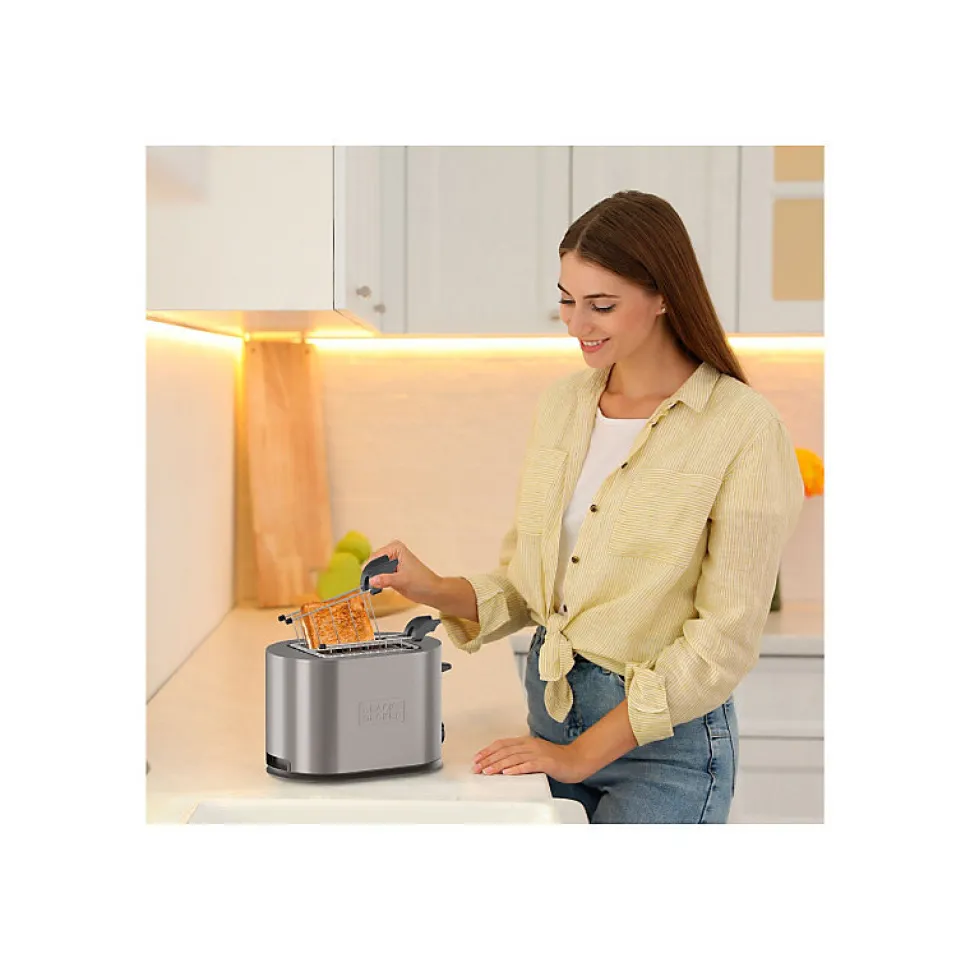 Design ergonomique et fonctionnelLe grille-pain Black & Decker BXTO901E allie esthétique moderne et praticité. Son format compact s’intègre parfaitement dans toutes les cuisines, tandis que ses commandes intuitives garantissent une utilisation simplifiée au quotidien.Technologie de cuisson homogèneÉquipé de fentes extra-larges et d’un système de chauffage haute performance, ce grille-pain assure une dorure uniforme sur tous les types de pain, bagels ou viennoiseries. La régulation thermique précise évite les brûlures pour des résultats parfaits à chaque utilisation.Fonctionnalités intelligentesAvec son interrupteur d’annulation rapide et son bac à miettes amovible, le modèle BXTO901E offre un nettoyage sans effort. Les fonctions de décongélation et de réchauffage intégrées répondent à toutes les exigences culinaires.Sécurité et durabilitéConçu avec des matériaux résistants à la chaleur et une structure antiadhésive, cet appareil garantit une longévité exceptionnelle. Le système anti-coincement protège les aliments pendant l’extraction pour une utilisation en toute sérénité.Fondée en 1910 à Baltimore par S. Duncan Black et Alonzo G. Decker, Black & Decker est une référence mondiale dans les équipements électroménagers et outils électriques. Reconnue pour ses innovations brevetées comme la première perceuse portable, la marque allie expertise technique et qualité industrielle depuis plus d’un siècle.Fentes extra-larges adaptées aux pains épais et bagelsFonctions décongélation et réchauffage intégréesBac à miettes amovible pour un entretien simplifiéStructure antiadhésive durable et facile à nettoyerSystème de sécurité anti-coincement des aliments
