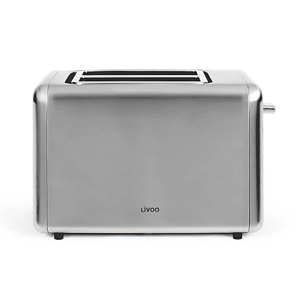 Grille-pain numérique 2 fentes LIVOO DOD205 en acier inox brossé, avec fentes larges de 3,5 cm adaptées au pain, bagels et gaufres. Puissance variable 720–850 W, 7 niveaux de brunissage, panneau tactile et afficheur numérique, fonctions décongélation, réchauffage et arrêt manuel, éjection automatique, tiroir ramasse-miettes amovible, levier relevable chromé, pieds antidérapants et design compact (28,5 x 15,6 x 18,9 cm). Garantie légale de conformité 2 ans.