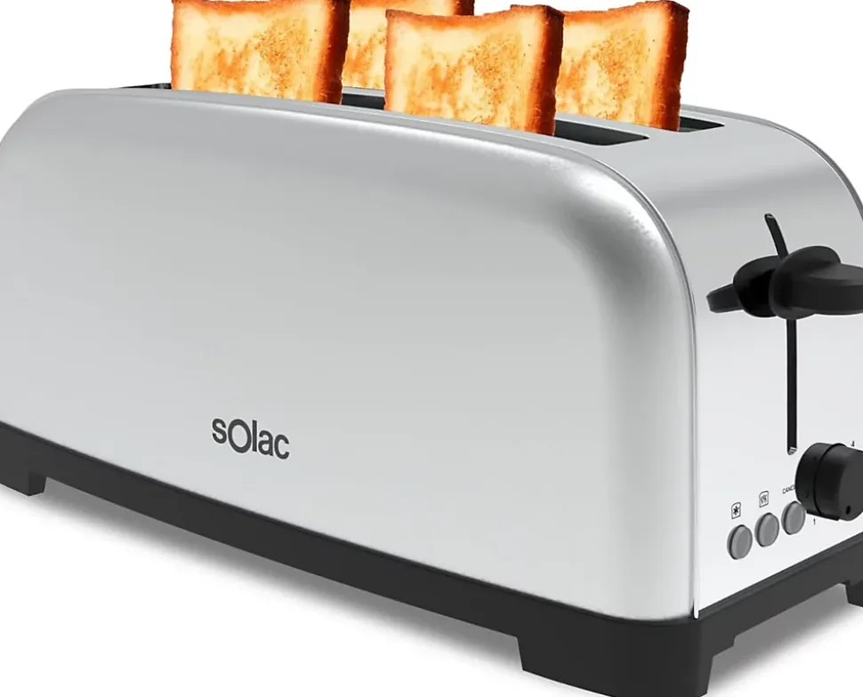 Ce grille-pain inox à 2 fentes longues allie puissance et polyvalence pour des petits-déjeuners rapides et réussis. Avec ses 1400 W, il permet de griller uniformément différents types de pain, y compris plusieurs petites tranches simultanément. Il propose trois fonctions pratiques : annulation, réchauffage et décongélation pour s’adapter à tous vos besoins. Les 6 niveaux de grillage réglables offrent un contrôle précis du brunissage selon vos préférences. Ses fentes extra longues à largeur variable accueillent pains fins ou épais en toute simplicité. Équipé d’un voyant LED, d’un plateau ramasse-miettes amovible et d’un logement pour le câble, il garantit une utilisation intuitive, un nettoyage facile et un rangement pratique. Son design en acier inoxydable apporte élégance et durabilité à votre cuisine.