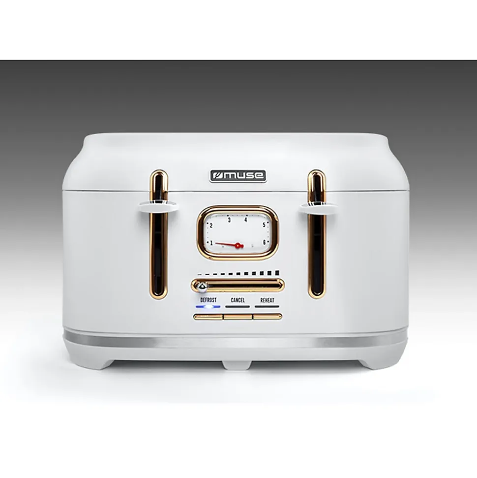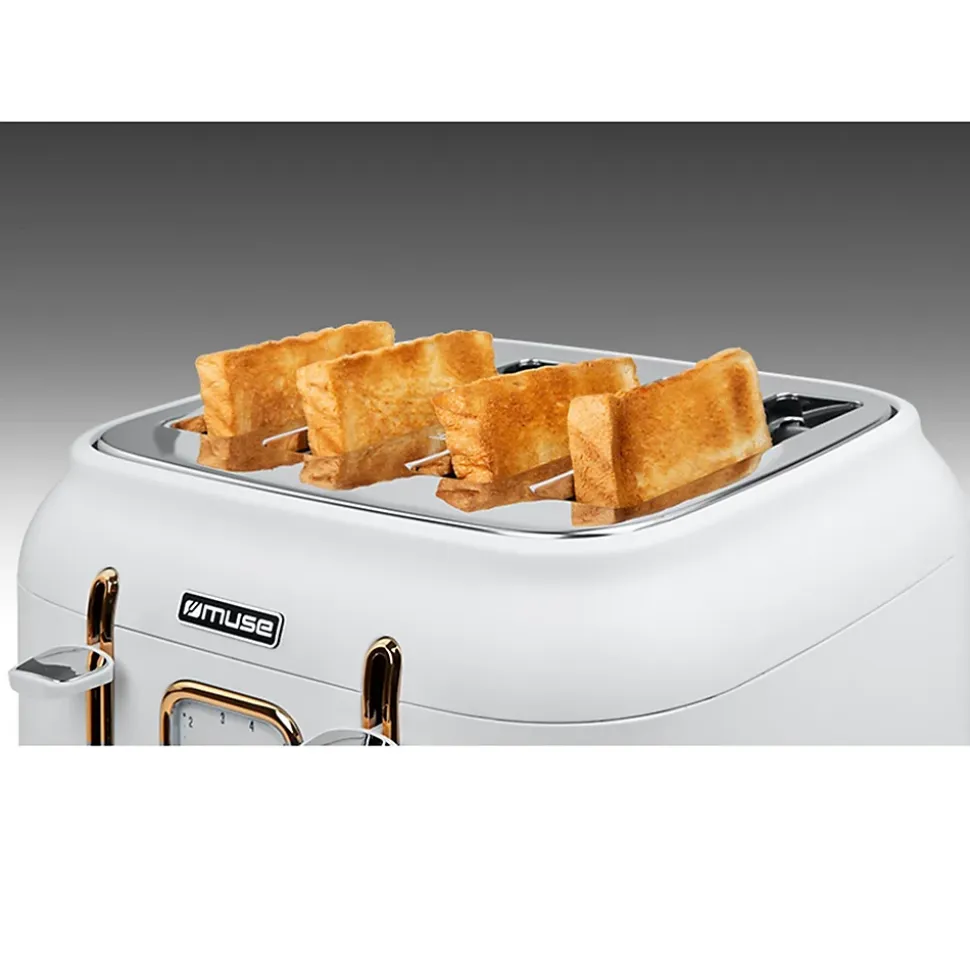 Grille-pain Muse MS-131W – 4 fentes – décongélation et réchauffage, Tiroir ramasse-miettes amovible, 1800W – Acier inoxydable et galvanisé, vous serez séduit par ses fonctionnalités et son look Rétro/DesignCARACTÉRISTIQUES :- 4 fentes- Tiroir ramasse-miettes amovible pour un nettoyage facile- Acier inoxydable et galvaniséFONCTIONS :- 6 niveaux de brunissement- Arrêt automatique- Touche de remontée- Interrupteur lumineux- Enrouleur de cordon- Surélévation pour un retrait des petites tranches en toute sécurité- Contrôle du brunissement avec fonctions d’annulation, décongélation et réchauffage- Cuisson double facePUISSANCE :- 1800WALIMENTATION :- 220-240V, 50/60HzPRODUIT :- 195 mm (H) x 300 mm (P) x 296 mm (L)- Poids net: 2.34 kg…