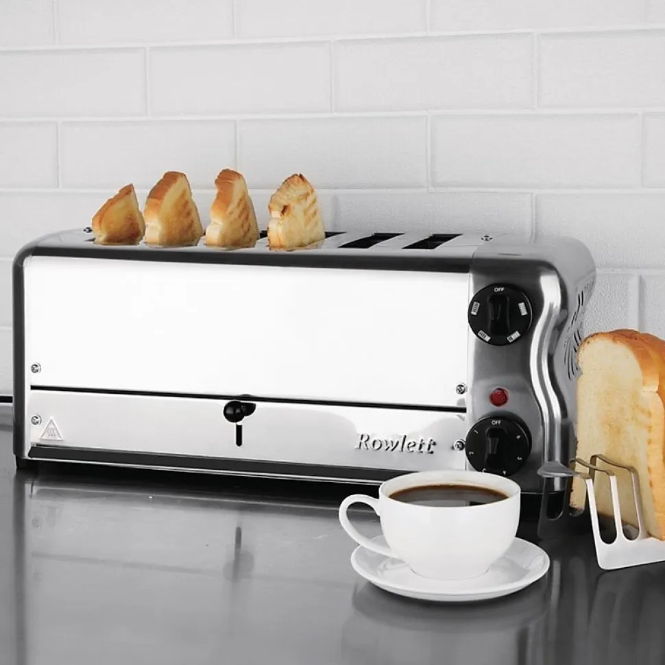 Grille Pain Professionnel – 6 Fentes Blanc – Rowlett Esprit La collection Esprit représente parfaitement la fonction intemporels et style, épurée et chic, du grille-pain. Fabriqué par des artisans qualifiés en Grande-Bretagne, ce grille-pain au design rétro procure la fiabilité nécessaire pour des résultats impeccables. Rendement: 2,6kWAcier inoxydableCode du Fournisseur: ESPR6CHUKAlimentation: 230VDimensions: 200(H) x 530(L) x 210(P) mmPoids: 7,2 kgPrise: ouiCorps en acier inoxydable avec extrêmités de couleur chrome6 fentesLargeur des fentes 32mmCommutateur rotatif écoénergétiqueMinuterie réglable avec signal sonoreIndicateur néon