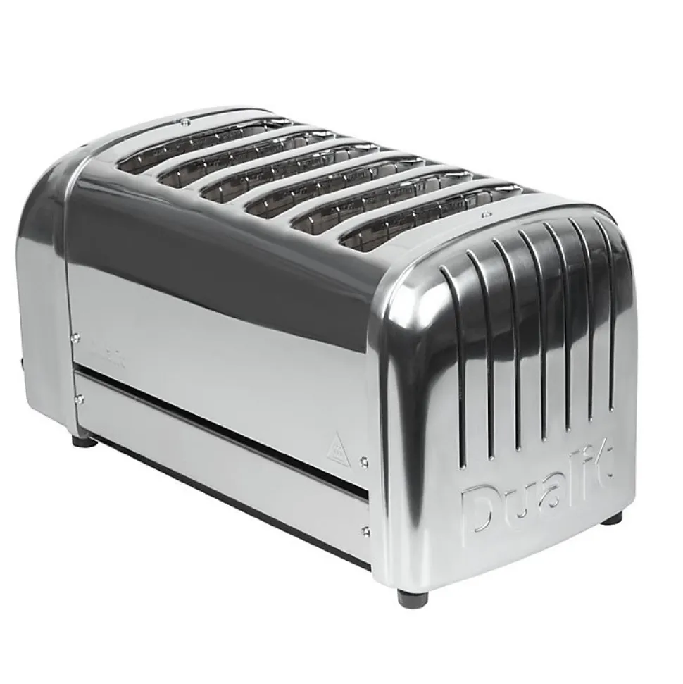 Grille-pain 6 tranches inox Dimensions: 210(h) x 460(l) x 220(p)mmRendement: 195 tranches/hPuissance: 3kW, 12.5AAlimentation: 230VPoids: 5,1 kgPrise: ouiEléments de chauffe Pro-Heat faciles à changer.Levier d’éjection à pousser vers le bas.Dimensions des fentes : 135(H)x 28(L)x 135(P)mmTiroir ramasse-miettes amovible facile à nettoyer.Référence soumise à une Eco-participation DEEE de 0,24€ par unité vendue
