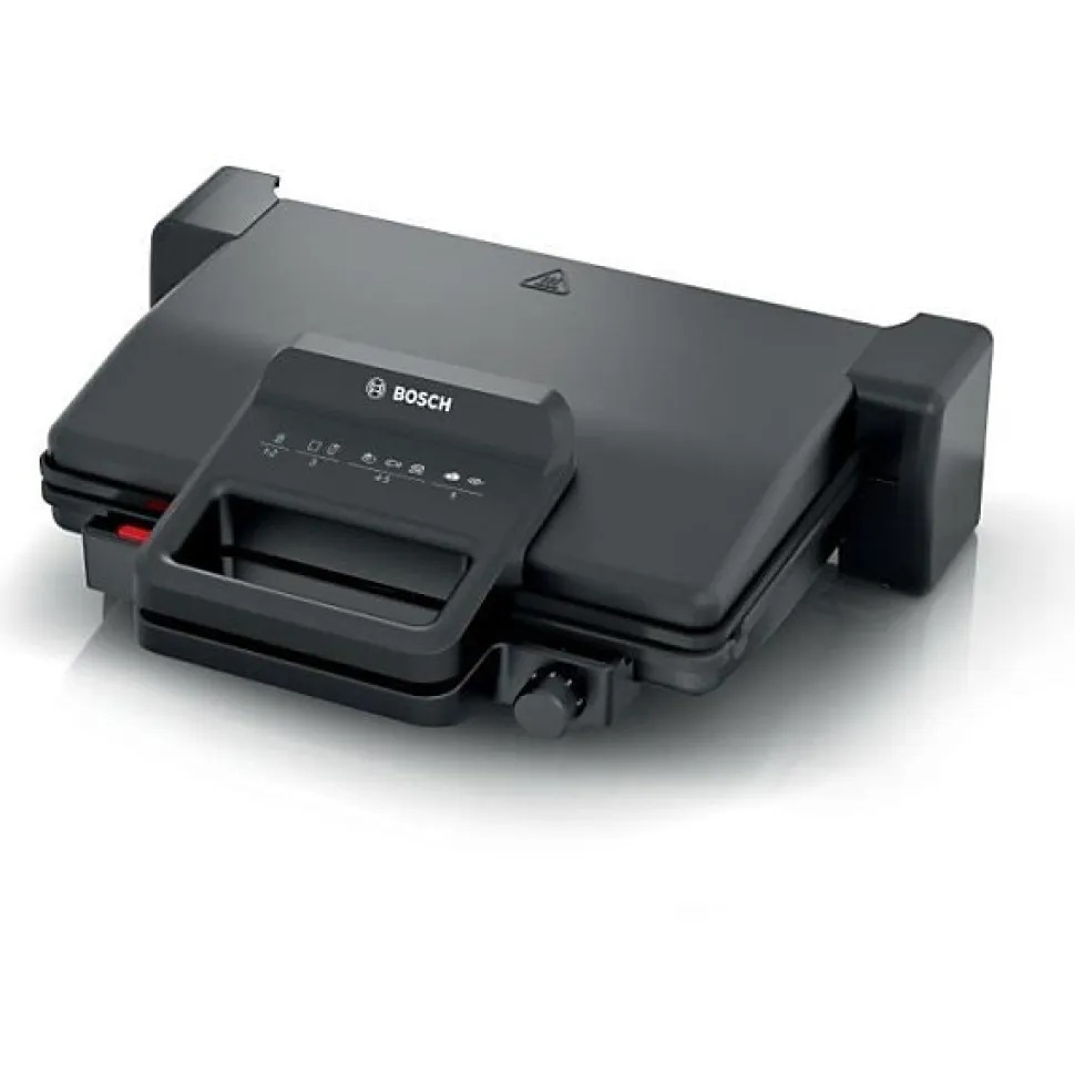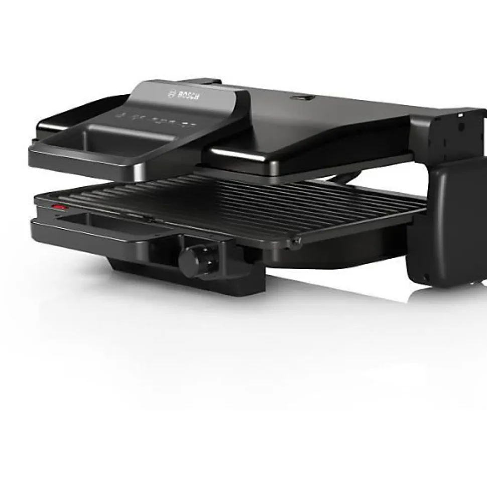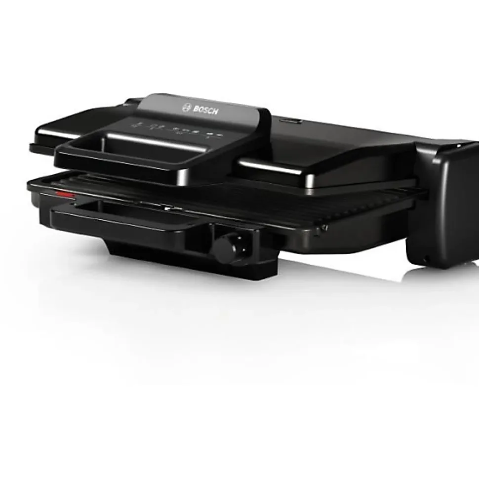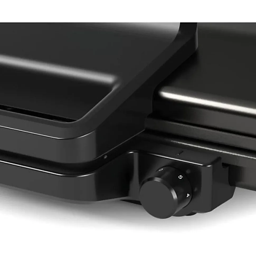 Grille-viande noir mat – 2000W – thermostat réglable en continu sur 5 niveaux – 3 positions : fermé en mode grill ou four, ouvert en mode pierrade – accessoires inclus: plaques amovibles avec revetement anti-adhésif en céramique – compatibles lave-vaisselle – indicateur LED.
