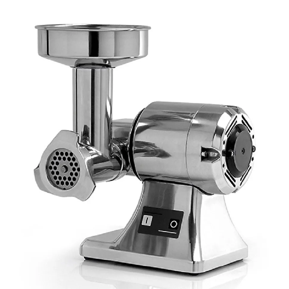 Hachoir à viande CHR en aluminium Matériel professionnel Idéal pour les hôtels, restaurants, tables, boucheries, etc Structure en alliage d’aluminium moulé sous pression poli Élégante bande de protection du moteur en acier inoxydable Engrenages à bain d’huile en acier trempé Moteur asynchrone ventilé avec protection thermique inclus Unité de hachage facile à retirer disponible en : acier inoxydable AISI 304 Tiroirs auto-affûtants en acier inoxydable inclus Dimensions entrée charcuterie charcuterie : 120×52 mm Dimensions bouche de sortie : Ø 60 mm Plateau et trémie en acier inoxydable Pilon en ABSCommandes 24 volts Le modèle est recommandé pour les petites entreprises Caractéristiques techniques :Largeur : 260 mmProfondeur : 270 mmHauteur : 360 mmPoids : 9 Kg Énergie : ÉlectricitéTension : 230 VPuissance : 0,380 kWFréq. : 50</span