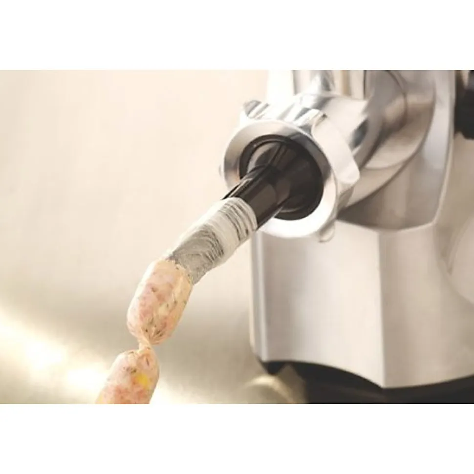Hachoir électrique professionnel Kenwood MG510 avec 1600 W de puissance. Corps en inox brossé, 3 grilles en acier pour différentes textures, capacité de hachage jusqu’à 125 kg/h, touché marche/arrière anti-bourrage, accessoires pour saucisses et kebbés inclus. Nettoyage facile avec démontage sans outil et composants lavables au lave-vaisselle. Conçu pour usage intensif, robuste et durable, idéal pour recettes variées et usage familial.