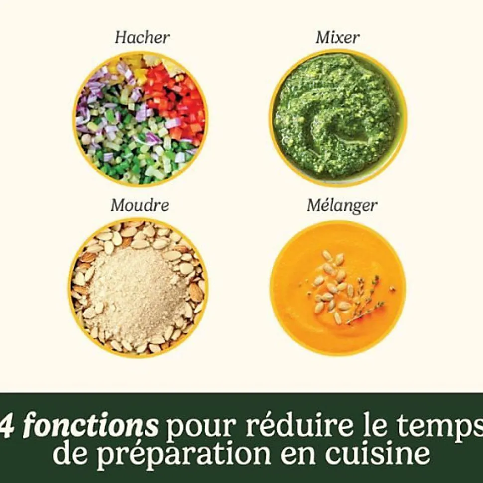 Le Hachoir électrique CUISINART ECH4E Mini Prep Pro combine puissance et compacité. Avec sa lame réversible et son bol de 900 ml, il hache, broie, mixe et mélange facilement. Son mode Pulse permet un contrôle précis pour des textures parfaites. Facile a nettoyer au lave-vaisselle, il est idéal pour sauces, condiments et épices.