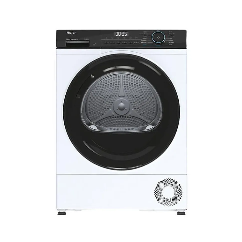 Sèche-linge pompe à chaleur – Découvrez l’efficacité et la performance du sèche-linge pompe à chaleur Haier I-Pro Serie 3 HD80-A2939E-FR – Avec une capacité de 8 kg et 15 programmes de séchage, il répond à tous vos besoins – Classé A++ en efficacité énergétique, il réduit la consommation d’énergie tout en garantissant un séchage optimal – Le programme I-Refresh rafraîchit, élimine les poussières et désodorise vos vêtements en seulement 30 minutes, sans lavage – Profitez d’une connectivité avancée avec l’application hOn, vous offrant plus de 60 programmes supplémentaires, des notifications d’entretien et des conseils pour prendre soin de votre linge – Le départ différé de 1 à 24 heures vous permet de programmer votre séchage pendant les heures creuses pour des économies supplémentaires – Avec un niveau sonore de 66 dB, ce sèche-linge fonctionne discrètement – Le bandeau de commande avec affichage du temps restant et les indicateurs de nettoyage du filtre et de bac à eau plein ajoutent à sa praticité. Capacité 8 kg Type de séchage Pompe à chaleur Programmation Electronique Conso élec 236 kWh / anNiveau sonore 66 dBVolume du tambour 118 LLabels et points clés Eco Label énergie A++ Efficacité de condensation BLe + produit I-Refresh élimine poussières et odeurs en 30 minutesMatériau du tambour acier galvaniséRéservoir d’eau haut Départ différé jusqu’à 24 heures Afficheur Temps Restant oui Connecté ouiPuissance de raccordement 2300 WIntensité 6 ADimensions (LxHxP) 59,6 x 85 x 62,5 cmPoids net 44,2 KgLieu de fabrication Turquie