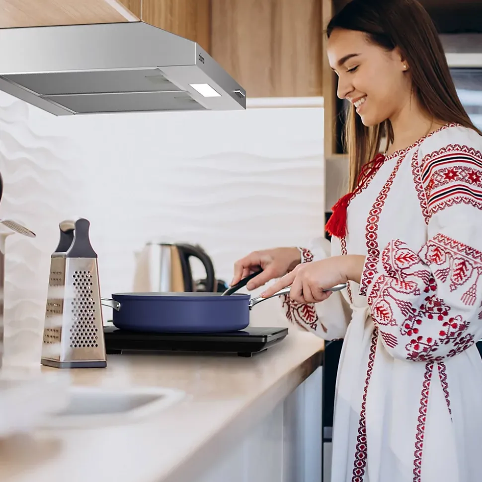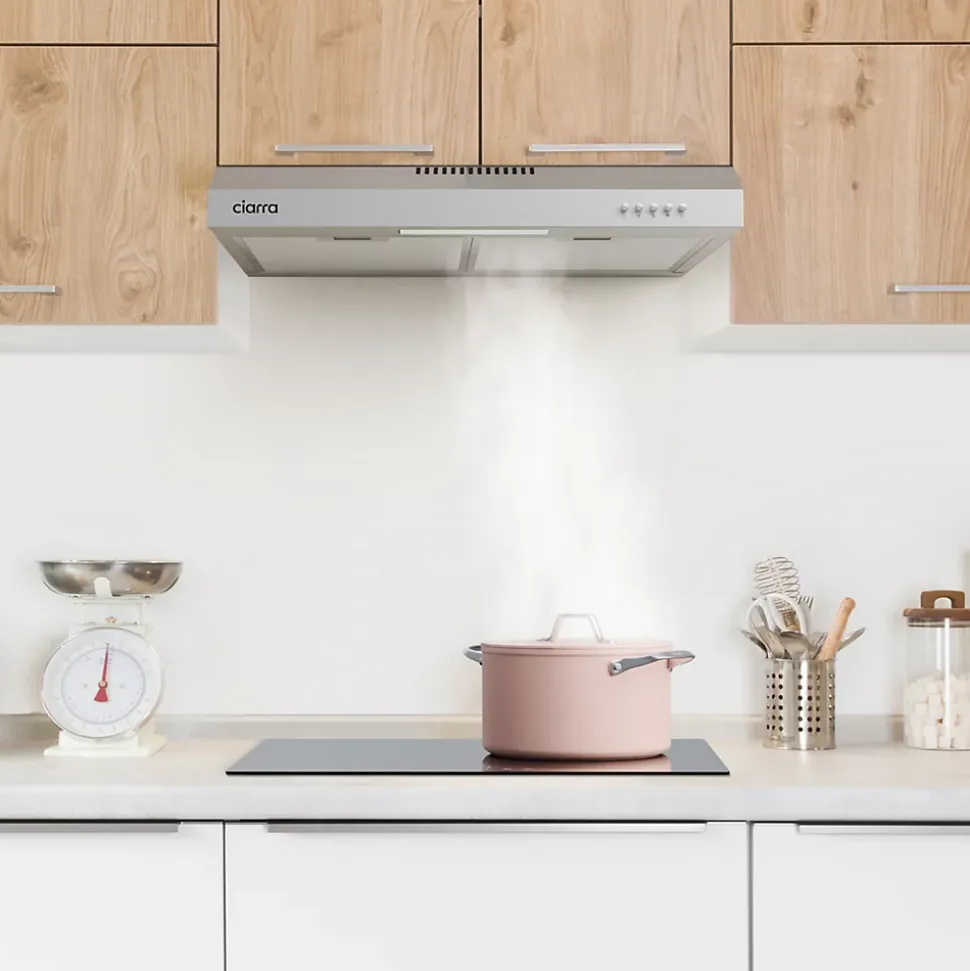 - Modèle Classique: Hotte casquette de 60cm de large, montée contre un mur ou intégrée