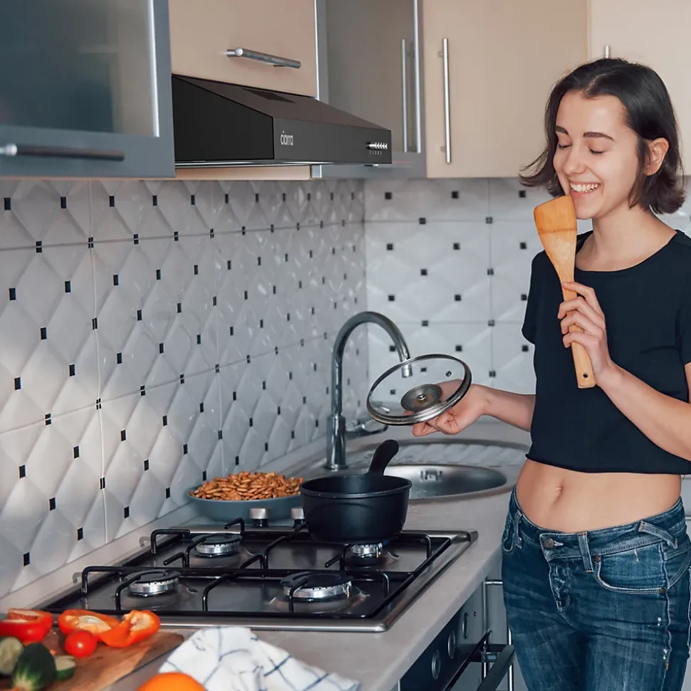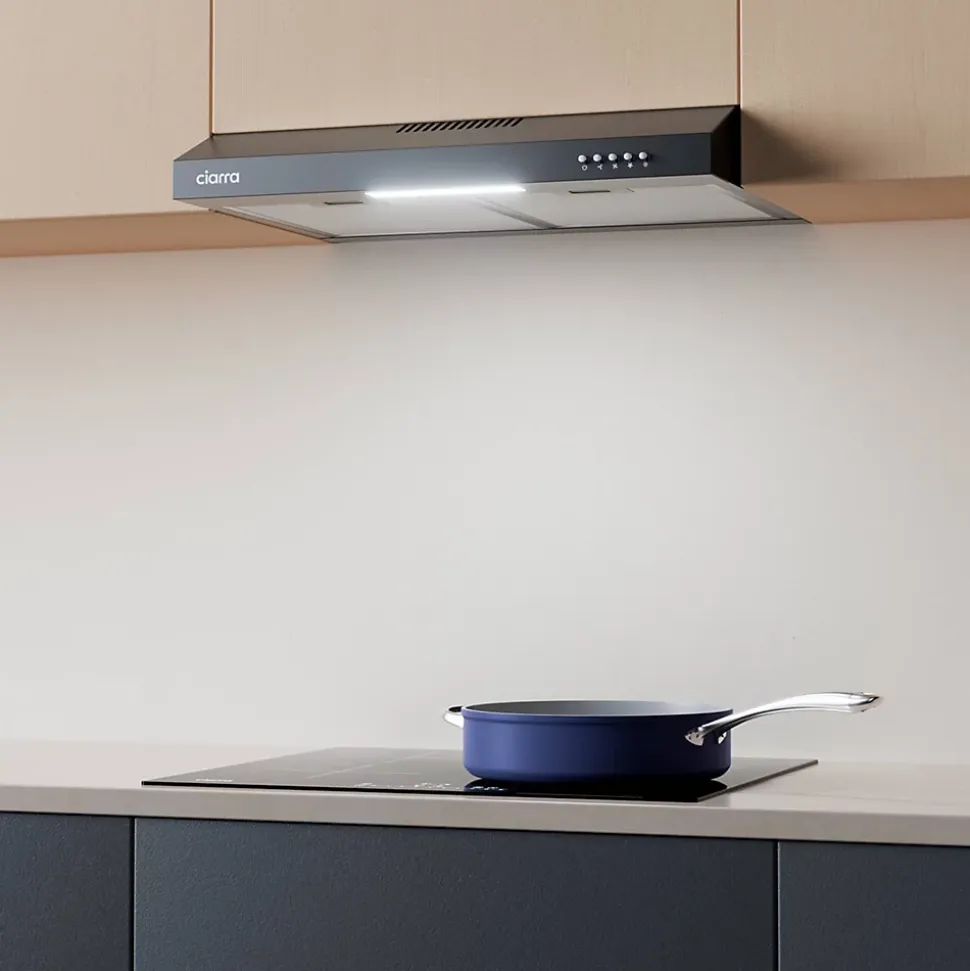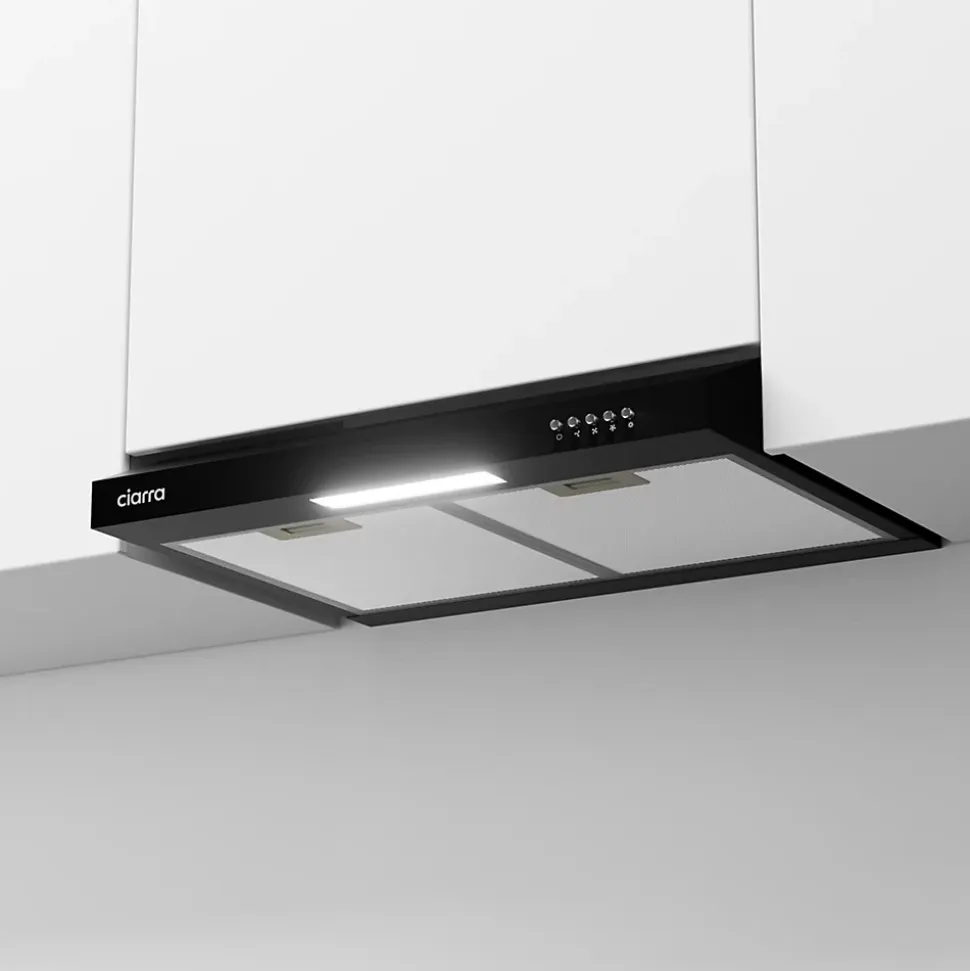 - Modèle Classique: Hotte casquette de 60cm de large, montée contre un mur ou intégrée