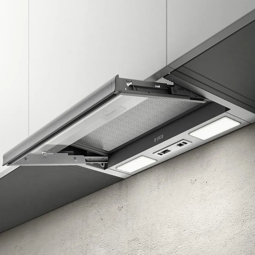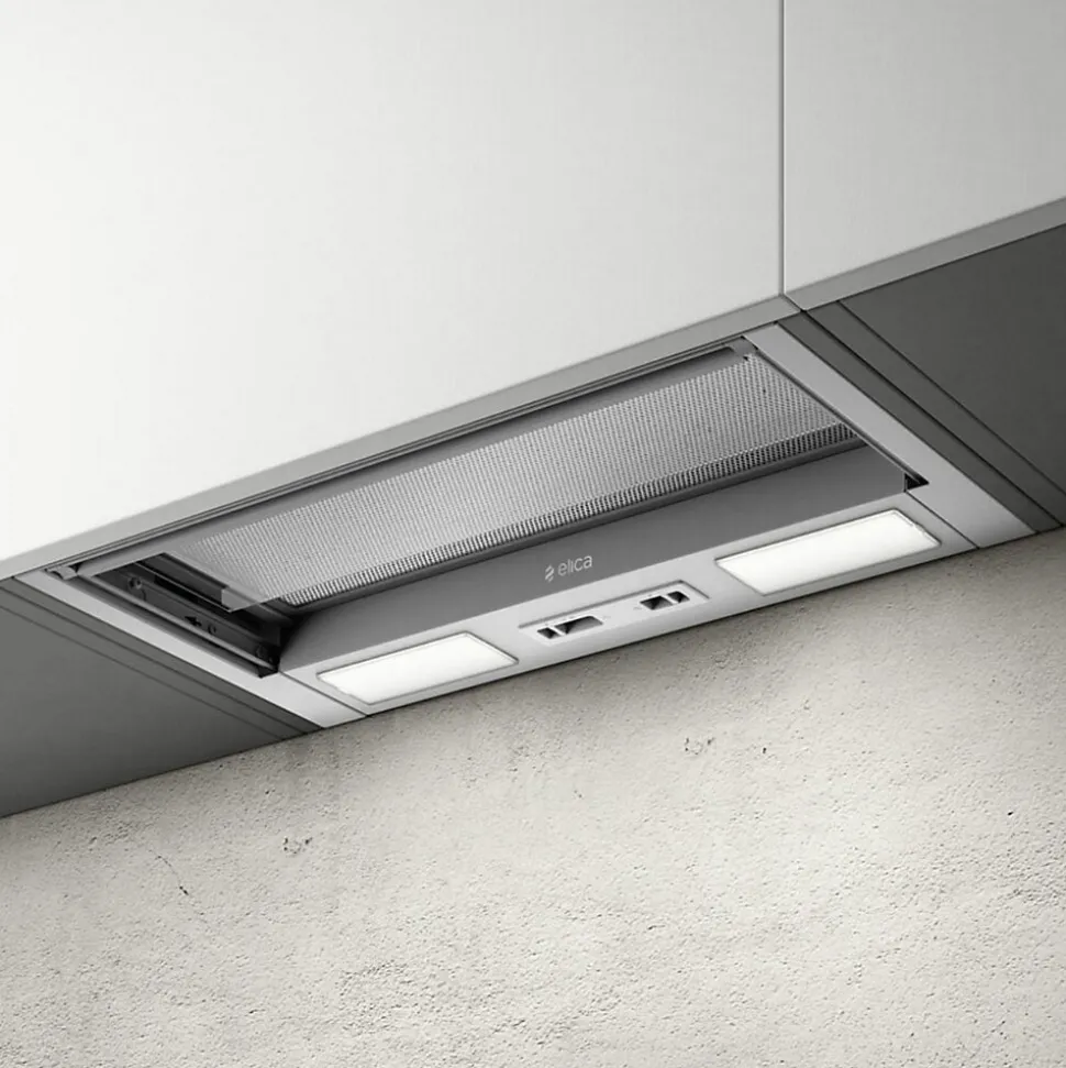 POINTS FORTS : CARACTÉRISTIQUES : • Commande : Tactile • Eclairage : LED 2 x 3 W – 2700 K • Finition : inox silver • SAV : 2 ans – SAV en France – Pièces, main d’oeuvre et déplacement • Marque : Elica • Coloris : Inox • Classe énergétique : C • Sortie d’air (mm) : 120 • Hauteur (mm) : 237 • Profondeur (mm) : 280 • Largeur (mm) : 564 • Matière : Inox • Forme de la hotte : encastrée • Type d’aspiration : extraction • Débit d’air min (m3/h) : 130 • Débit d’air max (m3/h) : 225 • Puissance (w) : 121 • Niveau sonore min (dB) : 47 • Niveau sonore max (dB) : 55 • Bon à savoir : La hotte est vendue en version aspirante avec extraction. Cependant, vous pouvez aussi l’installer en version recyclage en commandant 2 filtres à charbon. Référence filtre : CHACC120 (ean 3663019048226) • Poids net (kg) : 8.44