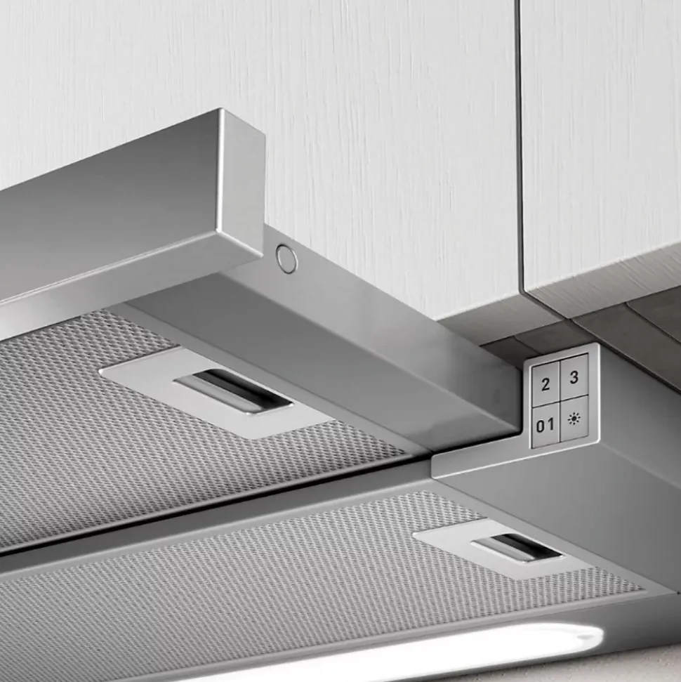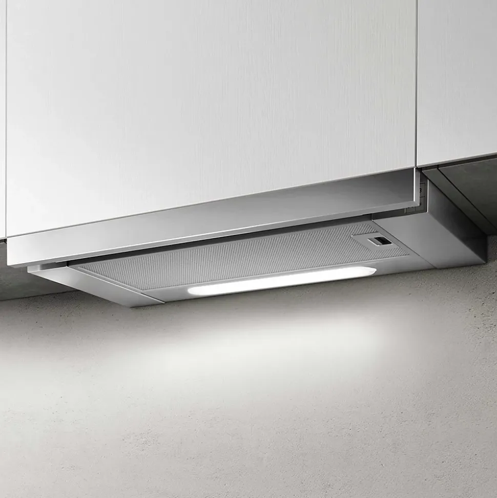 POINTS FORTS : • Hotte aspirante avec extraction •• Débit d’air max 645 (m³/h) •• Niveau sonore max 63 (db) •• Classe énergétique A CARACTÉRISTIQUES : • Commande : Tactile • Eclairage : LED 2 x 3 W • Finition : acier inox + gris • SAV : 2 ans – SAV en France – Pièces, main d’oeuvre et déplacement • Marque : Elica • Coloris : Gris • Classe énergétique : A • Sortie d’air (mm) : 150 • Hauteur (mm) : 436 • Profondeur (mm) : 282 • Largeur (mm) : 600 • Matière : Inox • Forme de la hotte : encastrée • Type d’aspiration : extraction • Débit d’air min (m3/h) : 255 • Débit d’air max (m3/h) : 535 • Puissance (w) : 206 • Niveau sonore min (dB) : 46 • Niveau sonore max (dB) : 63 • Bon à savoir : La hotte est vendue en version aspirante avec extraction mais elle peut être utilisée en version recyclage en commandant le filtre à charbon référence CHACC117 (ean 3663019048172) • Poids net (kg) : 6.5