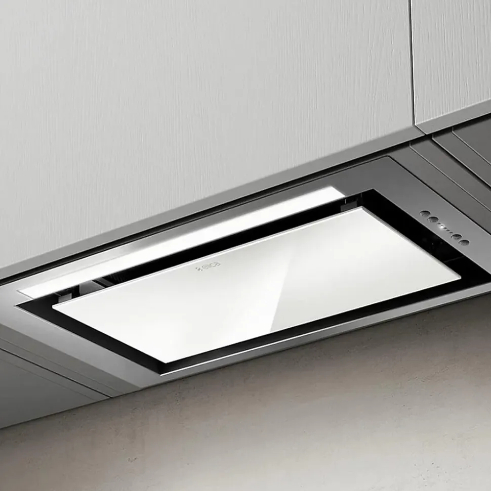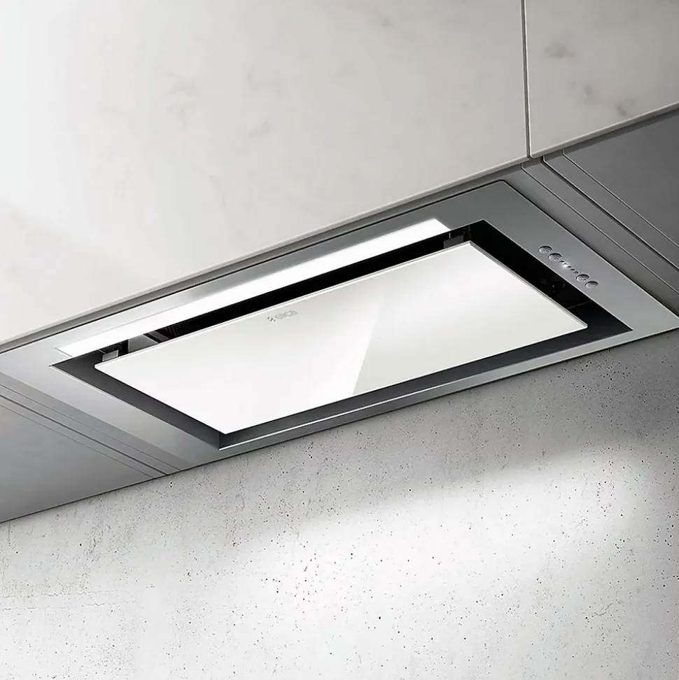 POINTS FORTS : • Hotte aspirante avec extraction, Classe A •• Débit d’air max 480 (m³/h)•• Niveau sonore max 65 (db) •• Largeur 51,4cm (pour meuble haut 60cm min) CARACTÉRISTIQUES : • Commande : Tactile • Eclairage : bandeau LED 7 W • Finition : acier inox + blanc • SAV : 2 ans – SAV en France – Pièces, main d’oeuvre et déplacement • Marque : Elica • Coloris : Blanc • Classe énergétique : A • Sortie d’air (mm) : 150 • Hauteur (mm) : 339 • Profondeur (mm) : 290 • Largeur (mm) : 514 • Matière : Verre • Forme de la hotte : encastrée • Type d’aspiration : extraction • Débit d’air min (m3/h) : 240 • Débit d’air max (m3/h) : 480 • Puissance (w) : 262 • Niveau sonore min (dB) : 49 • Niveau sonore max (dB) : 65 • Bon à savoir : La hotte est vendue en version aspirante avec extraction. Cependant, vous pouvez aussi l’installer en version recyclage en commandant le filtre à charbon. Référence filtre : CHACC115 (ean 3663019048240) • Poids net (kg) : 10.8