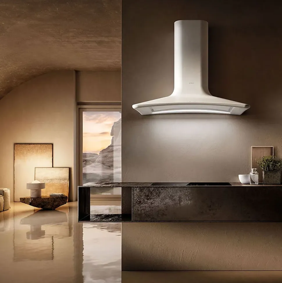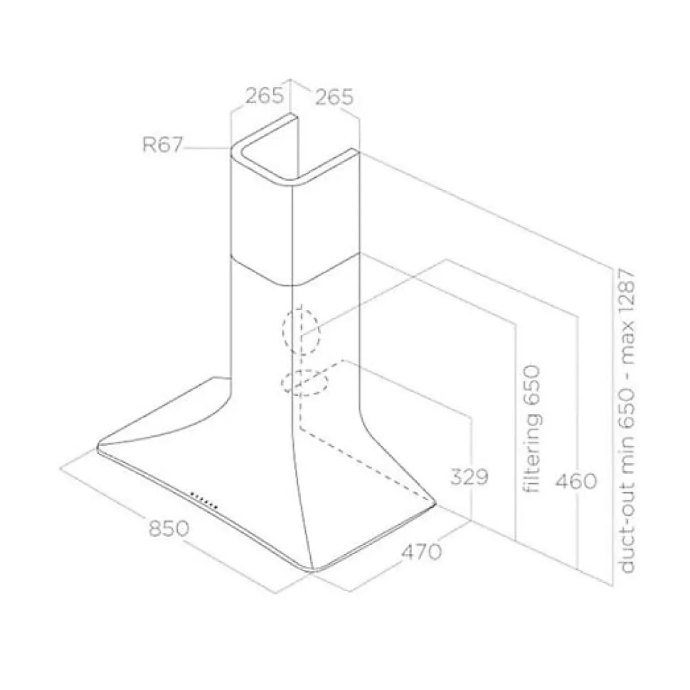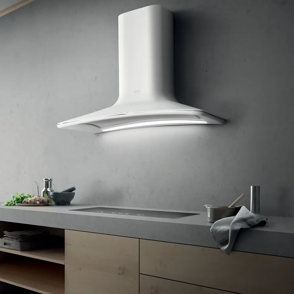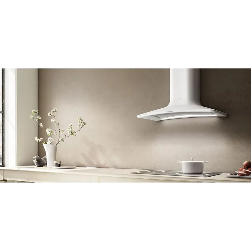 POINTS FORTS : • Hotte aspirante avec extraction • • Débit d’air max 480 (m³/h)• • Niveau sonore max 61 (db) • • Classe énergétique A CARACTÉRISTIQUES : • Commande : Tactile • Eclairage : bandeau LED 7 W – 4000 K • Finition : blanc mat • SAV : 2 ans • Marque : Elica • Coloris : Blanc • Classe énergétique : A • Sortie d’air (mm) : 150 • Hauteur (mm) : 650 • Profondeur (mm) : 470 • Largeur (mm) : 850 • Matière : Inox • Forme de la hotte : galbée • Type d’aspiration : extraction • Débit d’air min (m3/h) : 256 • Débit d’air max (m3/h) : 480 • Puissance (w) : 207 • Niveau sonore min (dB) : 46 • Niveau sonore max (dB) : 61 • Bon à savoir : Vendue en version extraction avec kit cheminée • Poids net (kg) : 18.0