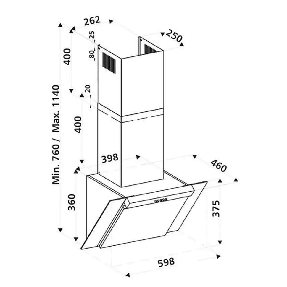 POINTS FORTS : • Hotte aspirante avec extraction • • Débit d’air max 500 (m³/h) • • Niveau sonore max 70 (db) • • Classe énergétique C CARACTÉRISTIQUES : • Commande : Tactile • Eclairage : LED 2 x 3 W • Finition : verre noir + inox • SAV : 5 ans – En France métropolitaine pour toute hotte Silverline achetée à partir du 1er février 2023, sinon 3 ans • Marque : Silverline • Coloris : Inox • Classe énergétique : C • Sortie d’air (mm) : 150 avec adaptateur 120 • Hauteur (mm) : 760-1140 • Profondeur (mm) : 460 • Largeur (mm) : 598 • Matière : Inox et verre • Forme de la hotte : pan vertical • Type d’aspiration : extraction • Débit d’air min (m3/h) : 281 • Débit d’air max (m3/h) : 559 • Puissance (w) : 216 • Niveau sonore min (dB) : 55 • Niveau sonore max (dB) : 70 • Bon à savoir : La hotte est vendue en version aspirante avec extraction. Vous pourrez également l’installer en reyclage, le filtre à charbon est inclus. • Poids net (kg) : 13.0