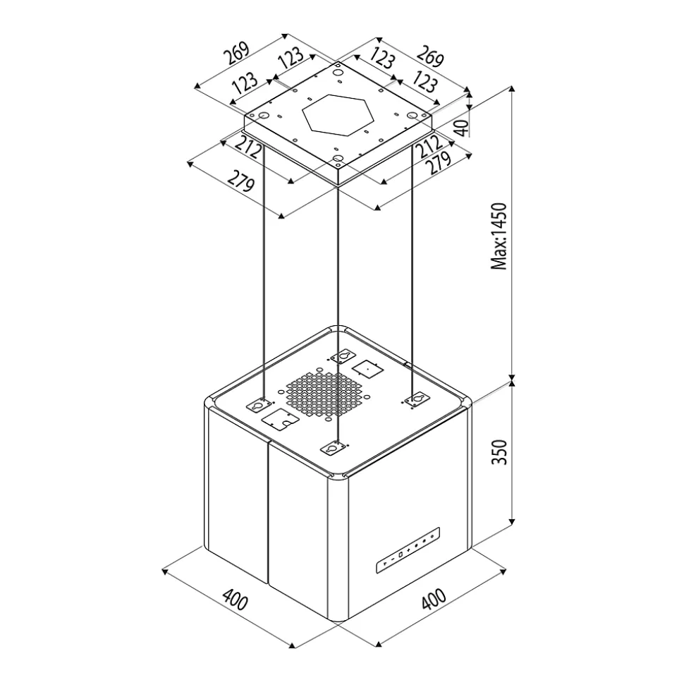 POINTS FORTS : CARACTÉRISTIQUES : • Commande : Tactile • Eclairage : LED 2 x 1,5 W • Finition : acier inox laqué noir • SAV : 2 ans • Marque : Silverline • Coloris : Noir • Classe énergétique : B • Sortie d’air (mm) : • Hauteur (mm) : 350 • Profondeur (mm) : 400 • Largeur (mm) : 400 • Matière : Inox • Forme de la hotte : lustre • Type d’aspiration : recyclage • Débit d’air min (m3/h) : 272 • Débit d’air max (m3/h) : 647 • Puissance (w) : 210 • Niveau sonore min (dB) : 47 • Niveau sonore max (dB) : 65 • Bon à savoir : Hotte livrée en version évacuation et recyclage avec filtre à charbon inclus (CHACC049, ean 3663019035929) • Poids net (kg) : 10.1