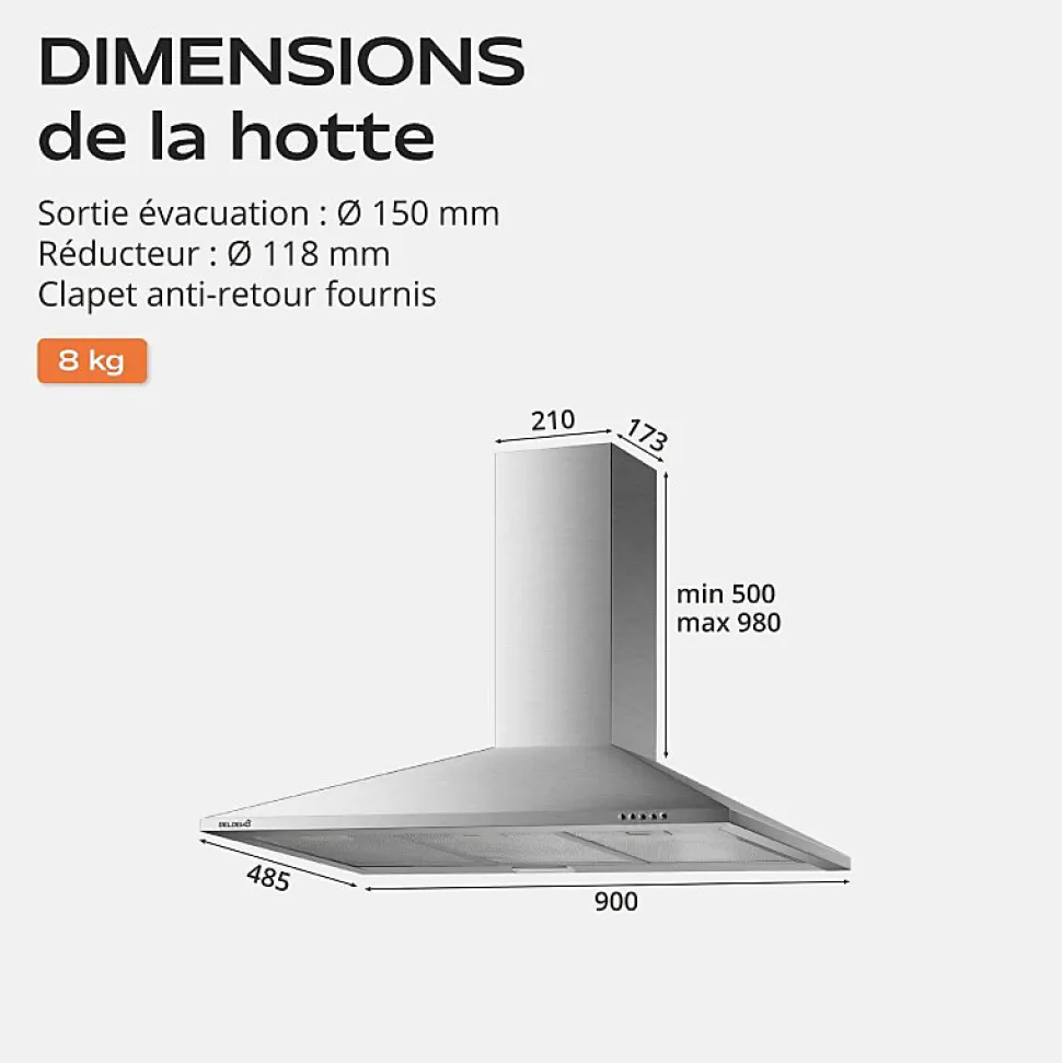 Hotte murale CLIONA 90 XS – Marque BELDEKO – Inox