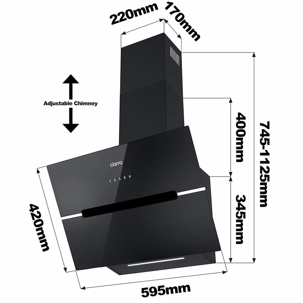 Hotte décorative inclinée pour cuisine, hotte aspirante classe A+++