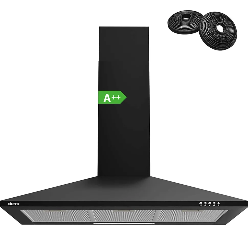 - Modèle Classique: Hotte murale de 90cm de large, apparence pyramidale