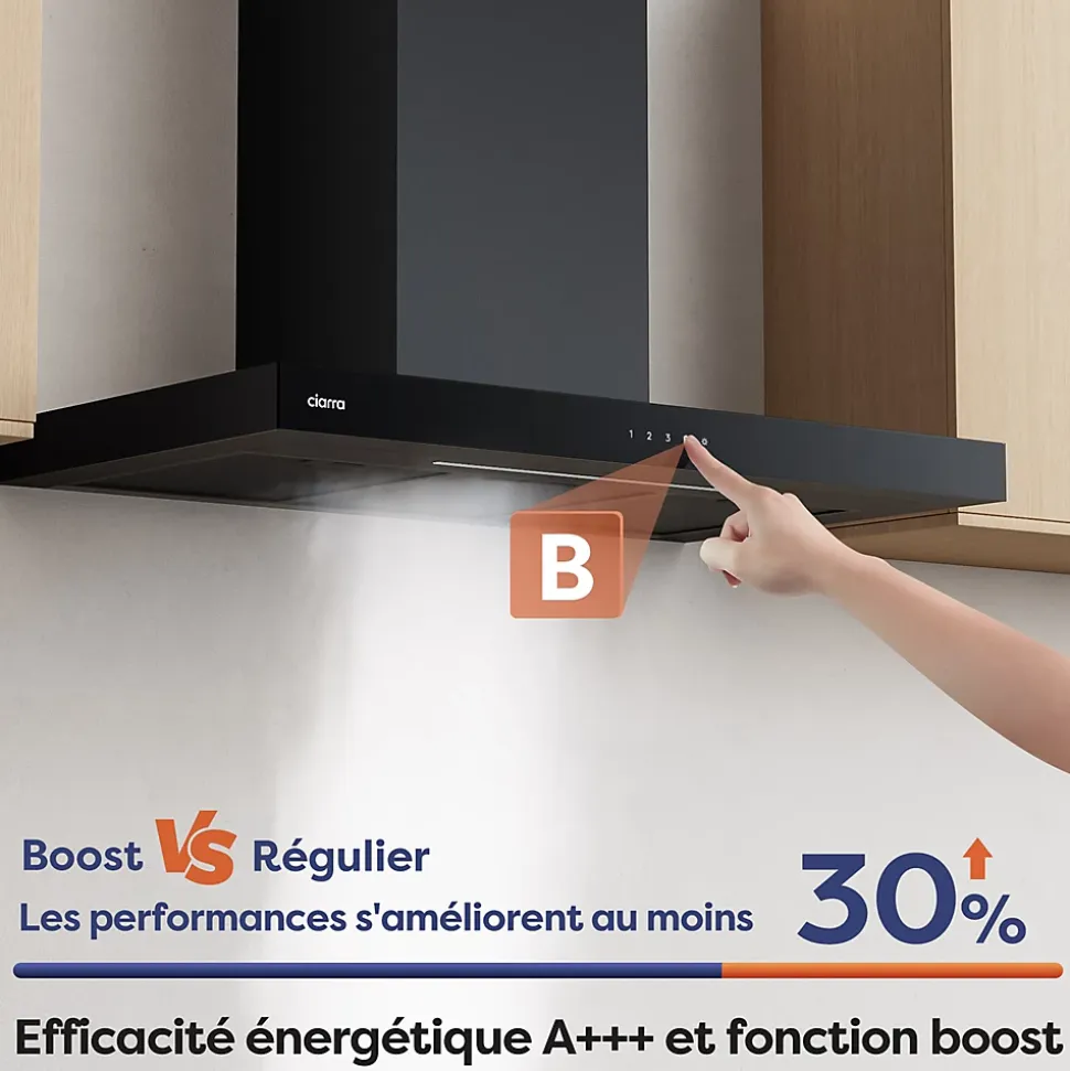 - Fonction Boost: Evacuer plus rapidement et efficacement les fumées