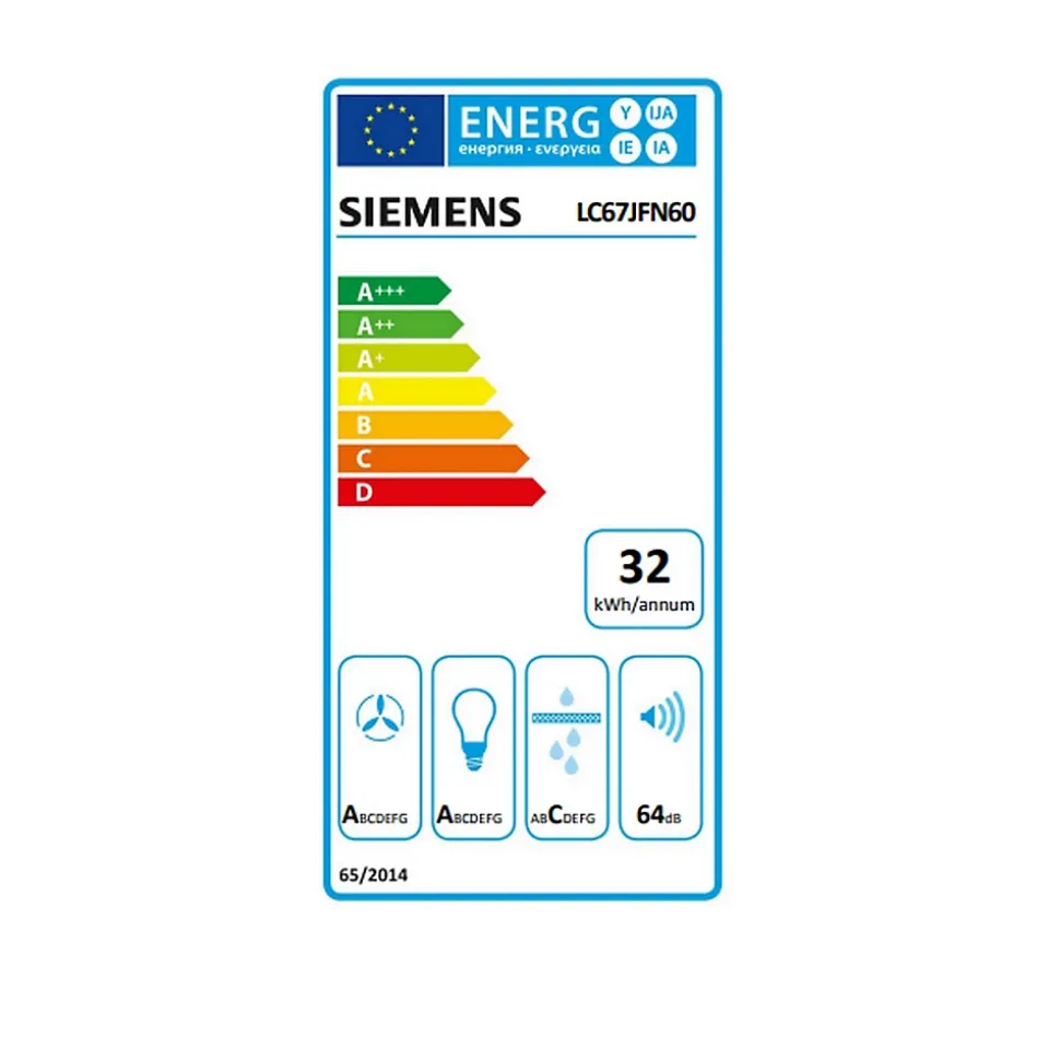 Hotte décorative inclinée 60cm 427m3/h noir Siemens – La hotte inclinée de Siemens LC67JFN60 avec moteur iQdrive très performant pour une cuisine automatiquement exempte d’odeurs et de bruit. Moteur iQdrive : performant et agréablement silencieux. Home Connect : commandez, contrôlez et réglez les préférences de votre hotte via un smartphone ou une tablette (uniquement dans les pays où le service Home Connect est disponible). CookConnect : contrôle via la table de cuisson: active automatiquement la hotte lors de la cuisson grâce à la connexion WiFi (avec table de cuisson compatible). Fonction centralisée table/hotte : la hotte adapte automatiquement la vitesse du ventilateur grâce aux données de cuisson fournies en continu par la table de cuisson (avec une table de cuisson adaptée et un compte Home Connect connecté). Niveau de performance : choisissez entre les niveaux standards de performance ou de silence pour augmenter le taux d’extraction ou réduire le bruit du ventilateur via l’application Home Connect. Lumière LED avec température de lumière réglable : permet d’adapter la température de la lumière à vos besoins personnels via l’application Home Connect. Indicateur de saturation, fonction de réglage et de réinitialisation du filtre à graisse et du filtre à odeurs disponible via l’appli Home Connect.Niveau de performance : choisissez entre les niveaux standards de performance ou de silence pour augmenter le taux d’extraction ou réduire le bruit du ventilateur via l’application Home Connect. Lumière LED avec température de lumière réglable : permet d’adapter la température de la lumière à vos besoins personnels via l’application Home Connect. Indicateur de saturation, fonction de réglage et de réinitialisation du filtre à graisse et du filtre à odeurs disponible via l’appli Home Connect. Appareil pouvant être mis à jour (disponible avec un compte Home Connect connecté) : l’appareil est toujours actualisé avec la dernière mise à jour. Grand angle d’ouverture de la
