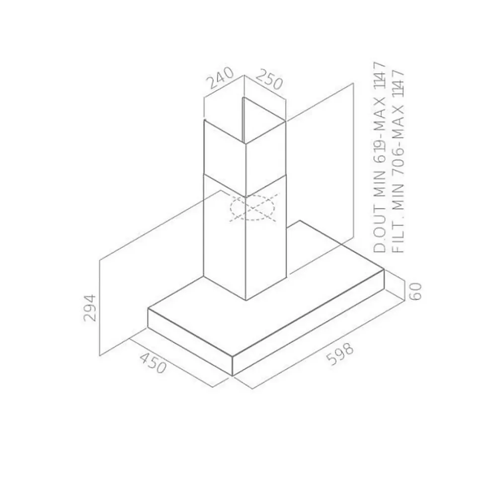 - Installation murale type hotte décorative 60 cm, cordon électrique de 150 cm fourni.