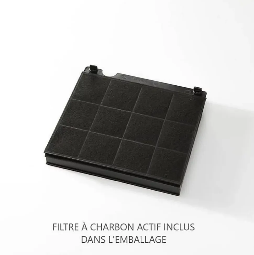 - Fonctionnement double : évacuation par conduit ou recyclage avec filtre à charbon inclus.