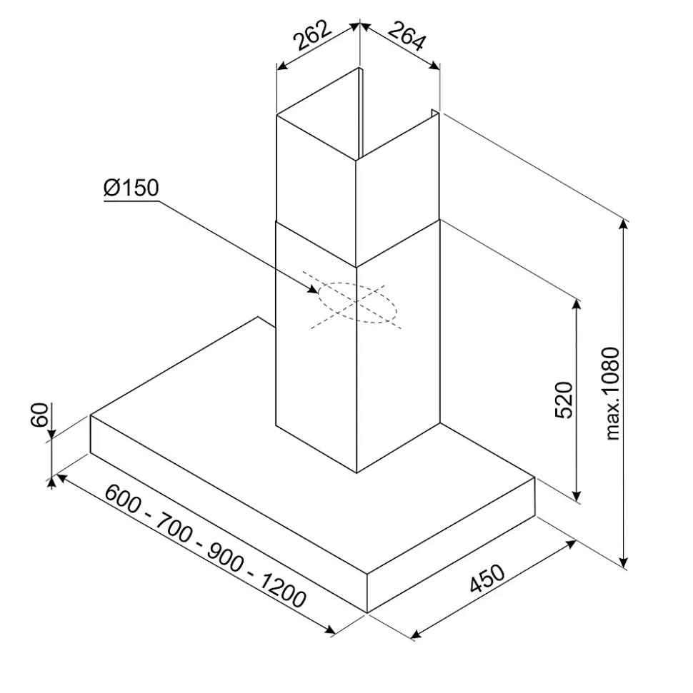 Hotte décorative murale Universel l. 90 cm KBCT900XE Smeg inox