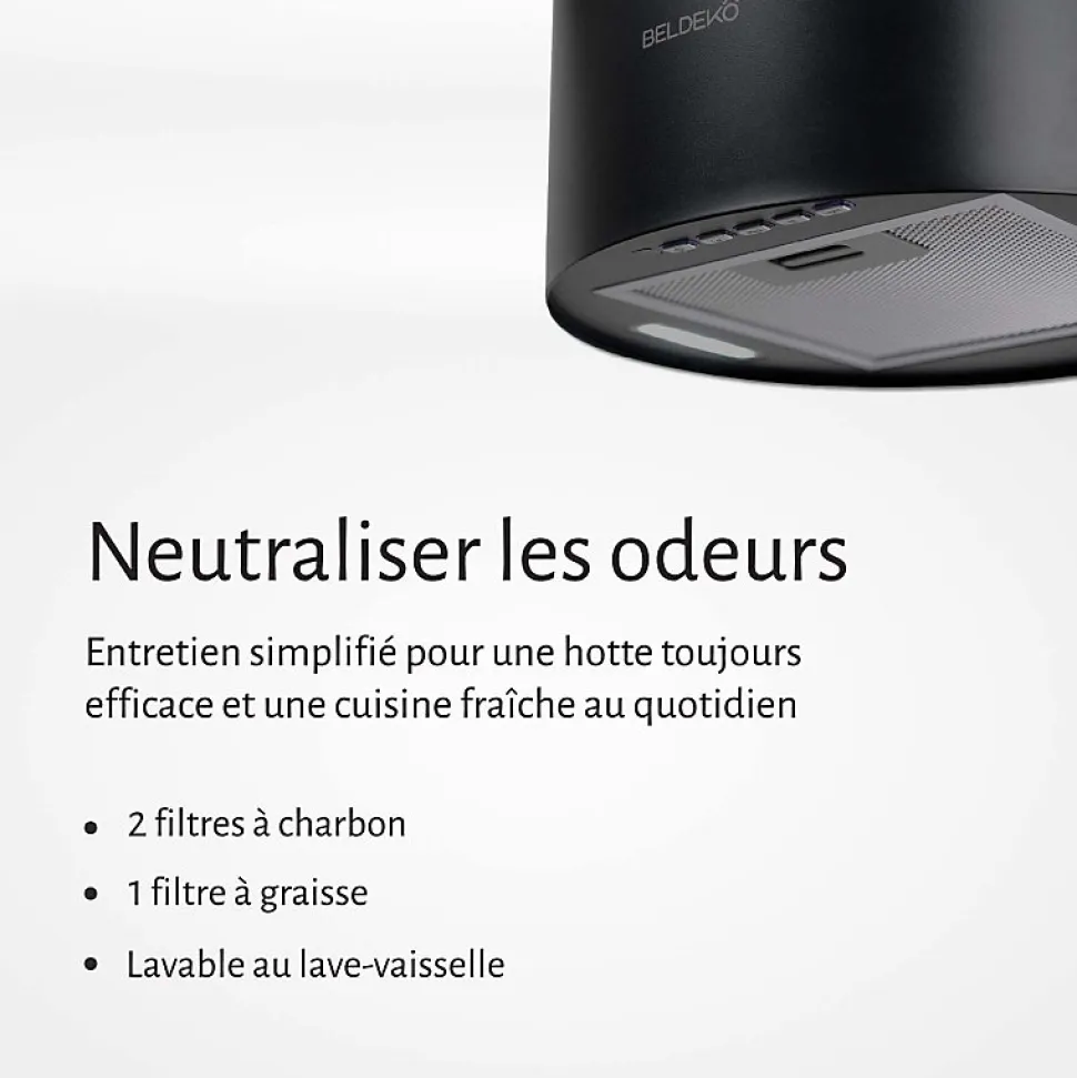 Hotte îlot PETROSIA BK – Marque BELDEKO – Coloris noir – Inox peint